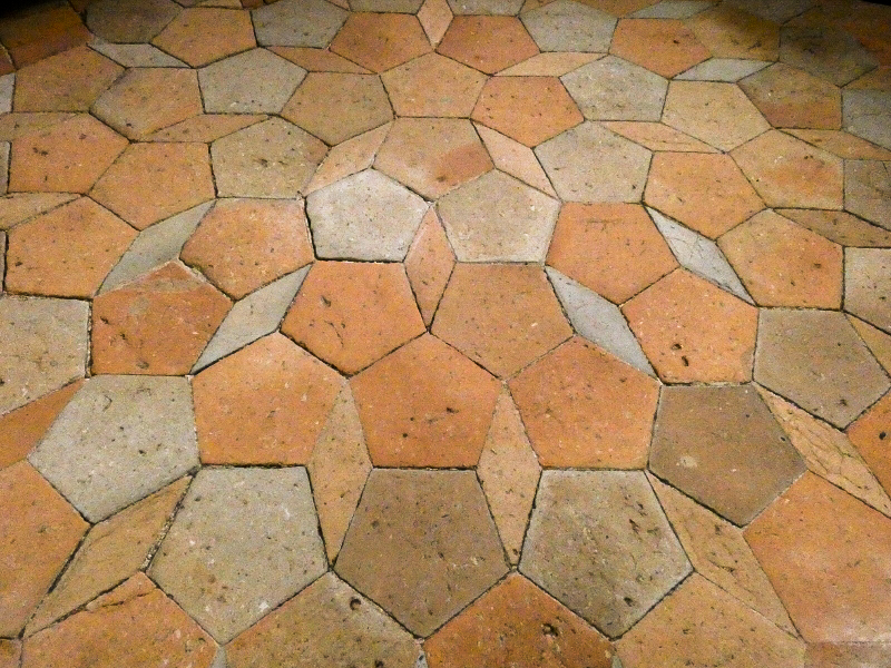 - 타일은 정오각형과 관련된 모양(따라서 황금비와 관련됨)으로 구성된다.