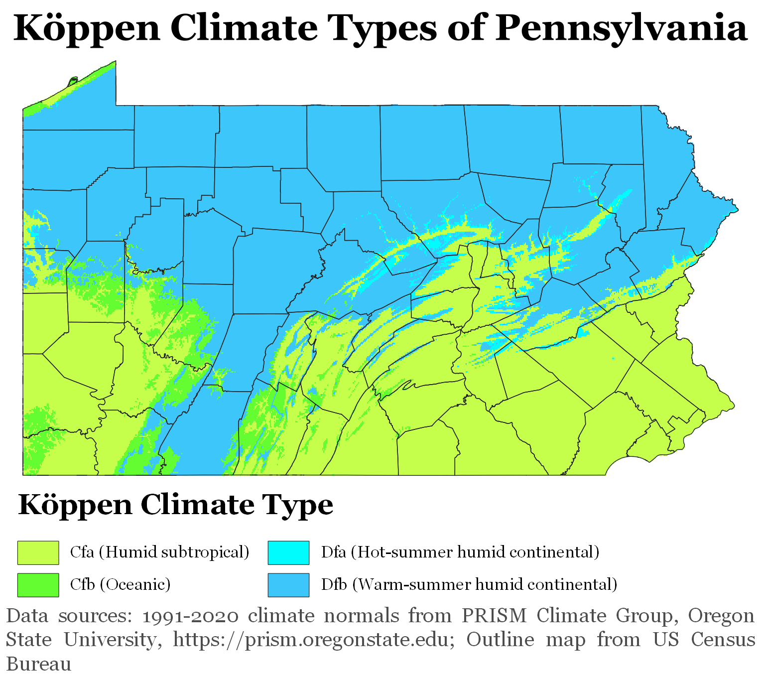 1923년, 캘빈 쿨리지 대통령은 주 북서부의 엘크, 포레스트, 맥킨, 워런 각 군에 걸쳐 있는 앨러게니 국립 삼림을 창설했다. 이는 주 내 유일한 국유림이다.
