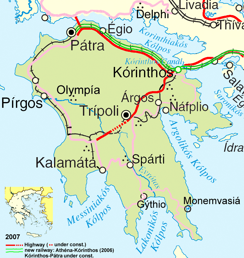 - GR-7호선 National Road 7 (Greece)영어 : 코린토스 - 아르고스 - 트리폴리 - 칼라마타