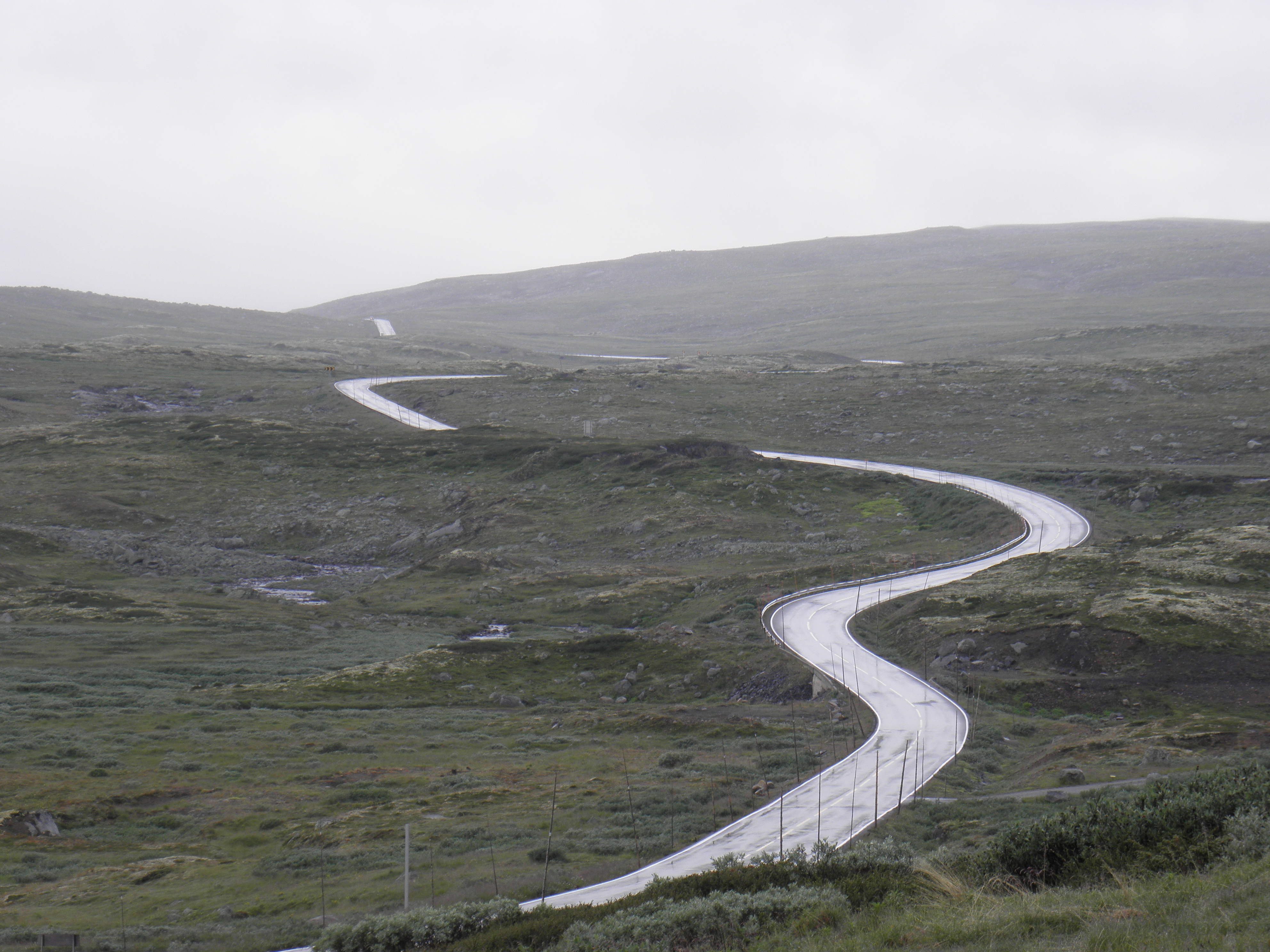 노르웨이 황량한 하르당에르비다 고원 횡단 도로.