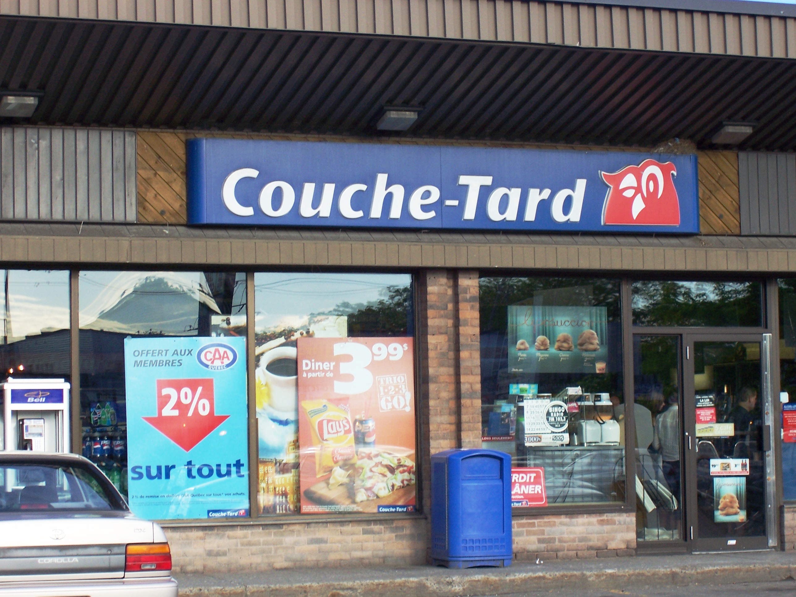 - 미국: 주유소에 병설된 형태의 점포가 많다. 일본의 편의점에서는 판매하지 않는 엔진 오일, 세차 용품 등의 자동차 용품도 판매한다. 심지어 자동차 정비 담당 직원과 정비 시설(피트)을 갖추고 엔진 오일 교환은 물론, 타이어 펑크 수리 등 자동차의 간단한 수리까지 하는 점포도 있다. 이는 광대한 국토 때문에 장거리 이동하는 차량이 사람이 없는 지역에서 고장 나면 위험할 수 있기 때문이다. 최소한의 생필품과 간단한 휴식을 취할 수 있는 간식, 음료 등 다양한 상품이 준비되어 있다. 주요 브랜드로는 am/pm, 미니마트(mini-mart) 등이 있다. 편의점의 경영 주체가 석유 관련 회사인 경우도 있는데, 미국 내 세 번째 시장 점유율을 가진 스피드웨이(Speedway)의 모회사는 석유 정제 회사인 마라톤 페트롤리엄이었다. 2020년 8월, 일본의 세븐일레븐 모회사인 세븐&아이 홀딩스가 2.3조엔에 스피드웨이를 인수했다.[90] 뉴욕이나 시카고 등 대중교통이 발달한 대도시 중심부에서는 식료품점( grocery store|그로서리 스토어eng )이 주류를 이룬다. 일용잡화, 신선식품(주로 과일)이 많이 진열되어 있으며, 독립 점포인 경우가 많아 영업시간, 상품 내용, 규모는 점포마다 다르다. 단순히 "식료품점"으로 불리거나 심야까지 영업하는 점포는 "나이트 아울( Night Owl|나이트 아울eng )"이라고 부르기도 한다. 일부 주(예: 네바다주 라스베이거스)에서는 매장 안에 비디오 포커나 슬롯머신이 설치되어 있는 지역도 있다.[91]