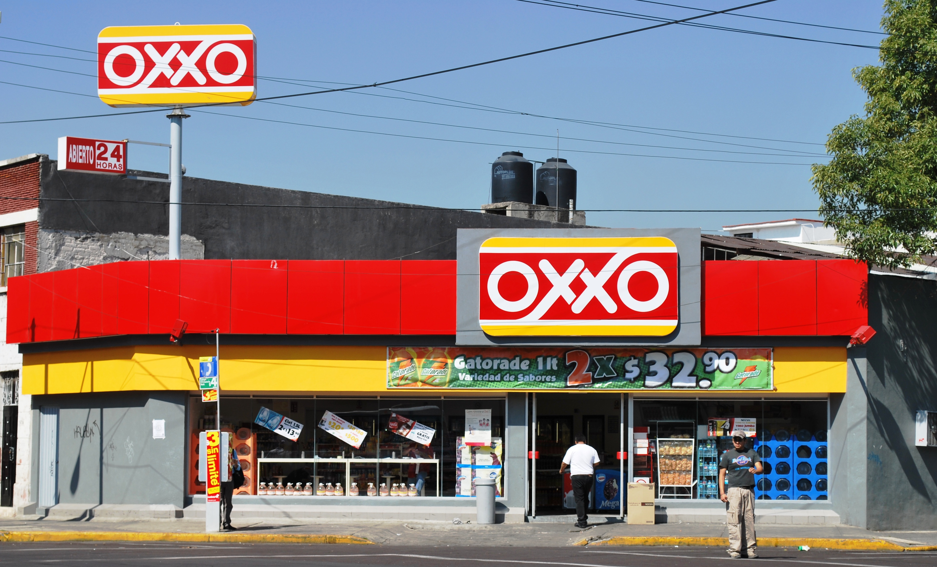 - '''멕시코''': 옥소(Oxxo)가 1만 5천 개 이상의 매장을 보유한 최대 체인이다. 티엔다스 엑스트라(Tiendas Extra), 세븐일레븐(7-Eleven), 슈퍼시티, 앰피엠(ampm), 서클케이(Circle K) 등 다른 체인들도 운영 중이다. 멕시코 최초의 편의점은 1976년 몬테레이에 문을 연 슈퍼 7(현 세븐일레븐)이다. 지역 체인으로는 아미고 익스프레스(Amigo Express), CB 마스(CB Más)(코마르카 라구네라(Comarca Lagunera)), 슈퍼 Q(Super Q), 엘 마타도르(El Matador)(케레타로(Queretaro)), 코요테(Coyote)(멕시코 중부), 키오스코(Kiosko)(콜리마(Colima) 및 인근 주), JV(멕시코 북동부) 등이 있다. 매장에서는 커피, 핫도그, 나초 등 패스트푸드와 선불 휴대전화 충전(텔셀(Telcel), 모비스타(Movistar)), 신문, 잡지, 파니니 상품 등을 판매한다. 또한, ''미셀라네아스(Misceláneas)'' 또는 ''티엔다스 데 아바로테스(tiendas de abarrotes)''(식료품점)라 불리는 소규모 가족 경영 편의점도 흔하며, 시골부터 주택가까지 다양한 곳에서 운영된다. 이들은 대형 체인점보다 상품 구색은 제한적이지만, 수제 간식을 판매하거나 담배를 개비 단위로 판매하는 등 지역 주민들의 필요를 채우며 만남의 장소 역할도 한다.[35]