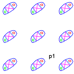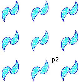 p2 군은 네 개의 180도 회전 변환(위수 2)을 포함하지만, 대칭변환이나 미끄럼 반사 변환은 없다.