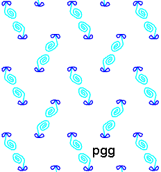 - 그룹 ''pgg''는 2차 회전 중심 두 개(180°)와 두 개의 수직 방향의 글라이드 반사를 포함한다. 회전 중심은 글라이드 반사 축에 위치하지 않는다. 반사는 없다.