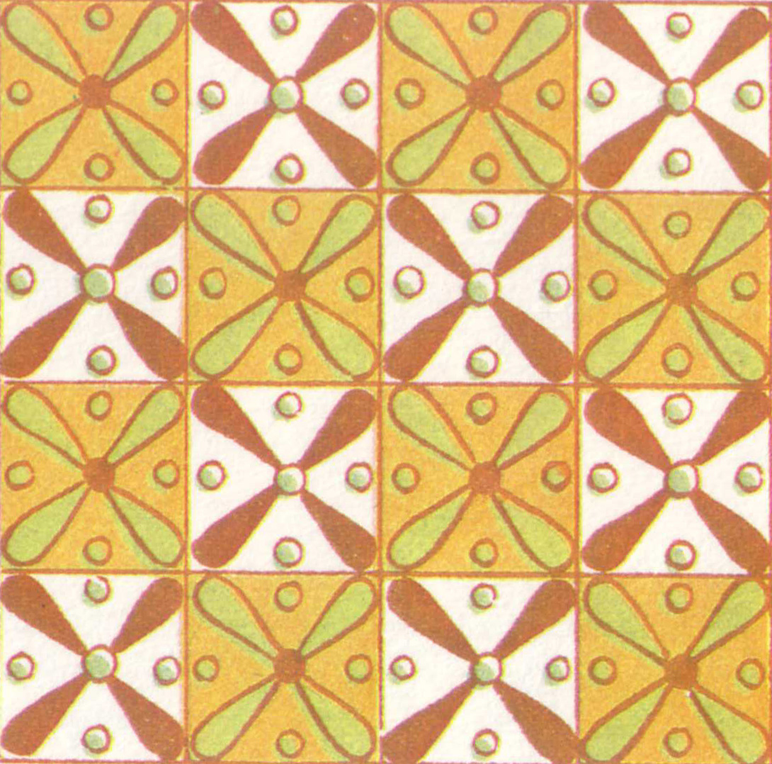 예시 '''B'''를 각 사각형이 원래 접하고 있던 그 옆의 다른 사각형을 덮도록 한 '단위' 만큼 오른쪽으로 ''옮기면'', 그 결과 패턴은 정확히 처음의 패턴과 같다. 이 대칭성의 종류는 평행이동변환이다. 예시 '''A'''와 '''C'''는 가능한 가장 작은 이동들이 대각선 방향이라는 점만 제외하고는 유사하다.