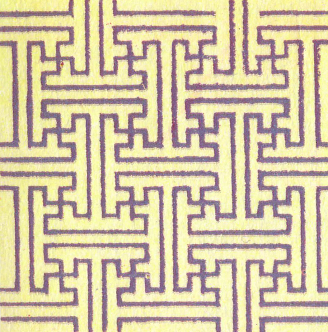 - 각각이 그 자체로 두 개의 사각형 타일이 교차하는 장기판 무늬는 2중 대칭이다.