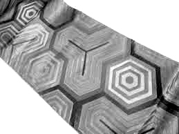 똑같이, 등각 모양과 같은 크기를 가지고 있는 6각형은 변들이 가장 작은 평행이동에 대응하는 평면의 바둑판 무늬로 짜맞추기를 상상해보자.[1] 그러면 이 평면 결정 그룹은 모든 6각형이 같고(그리고 같은 방향을 갖는) 위수 3의 회전 변환을 갖는 반면 그것들은 거울 상 대칭을 갖지 않는다.[1] 주어진 이미지에 대해, 이러한 바둑판 무늬로 짜맞추기 중 정점으로서의 회전 중심을 가진 각각의 아홉 개는 가능하다.[1] 이미지에 의하여 중심은 각각 빨강 삼각형 또는 파랑 또는 초록색의 세 가지 결정을 할 수 있다.[1]
