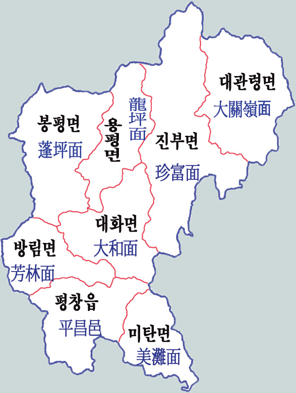 한자 표기 | 平昌郡 |