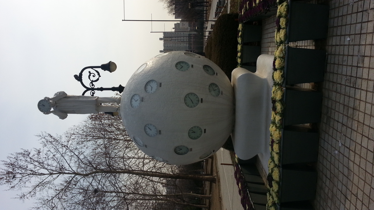 한 남자가 세계 각국의 시간이 새겨진 지구본 위에 서 있다. 그는 시간을 보지 못하지만 시계는 계속해서 똑딱거린다. 작가는 이 작품을 통해 사람들이 흘러가는 시간 속에서 자신의 삶을 되돌아보기를 제안한다.