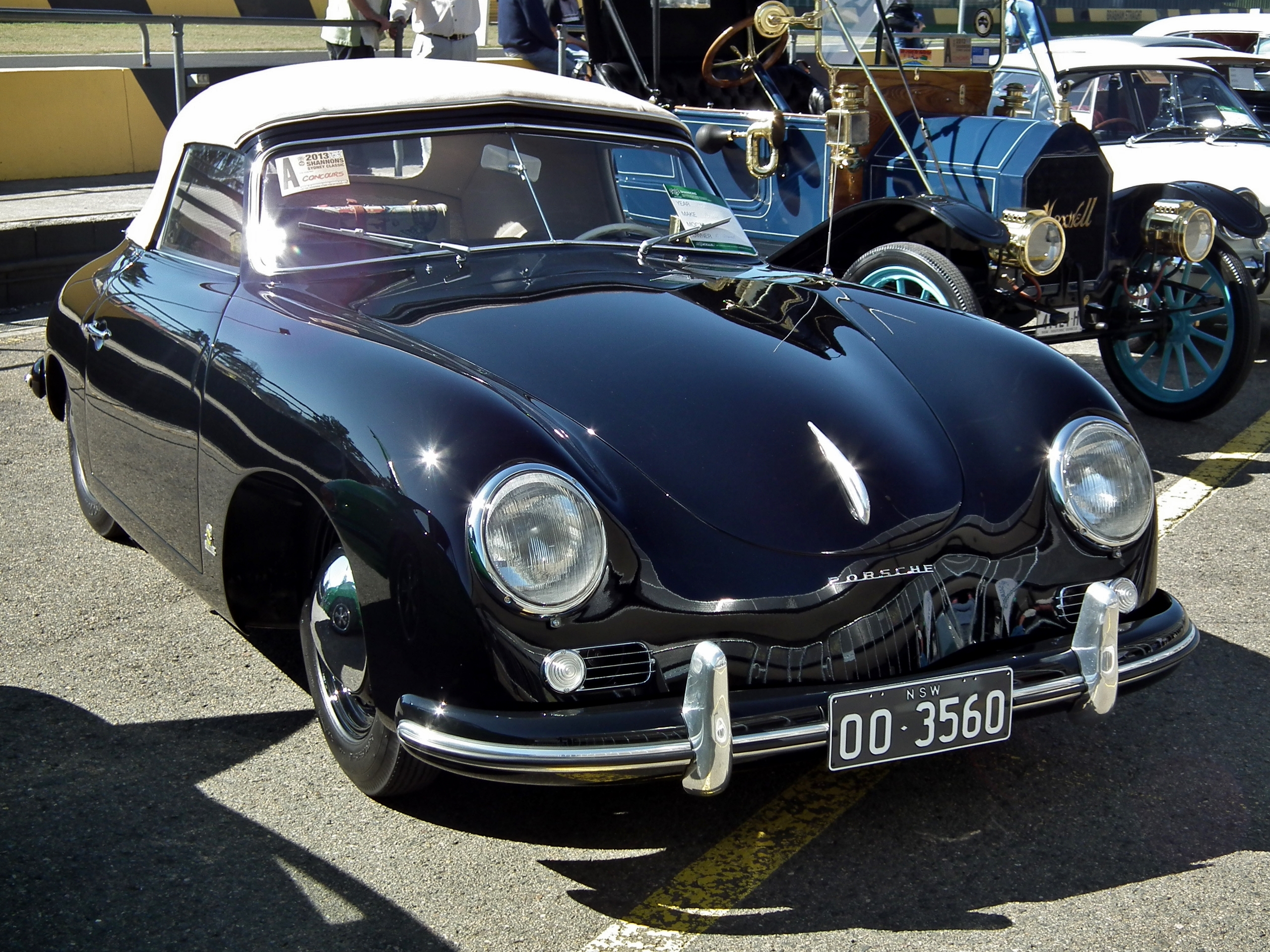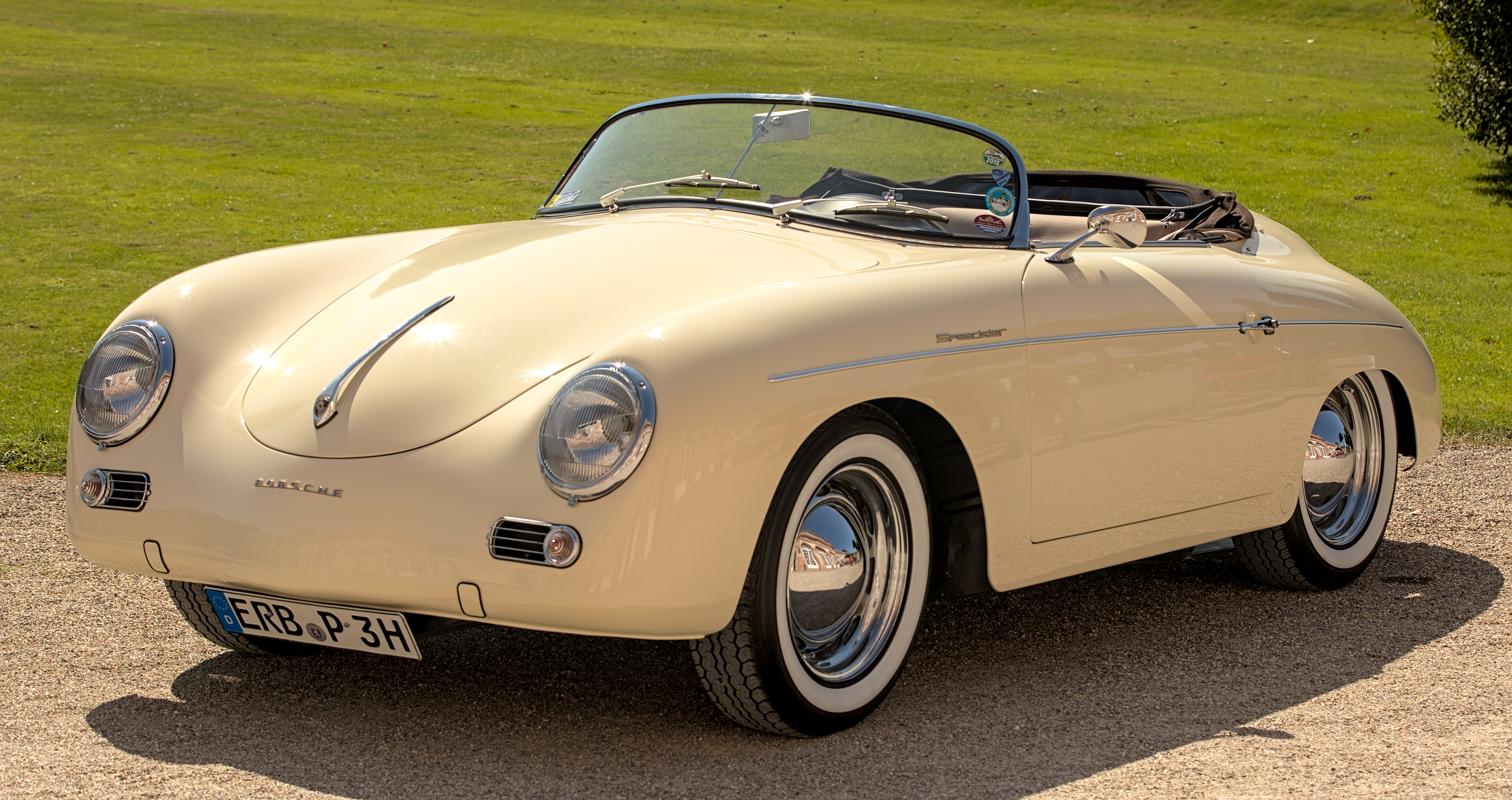 포르쉐 356 스피드스터 – 낮은 앞 유리가 특징이며, 사진의 차량은 앞 범퍼가 제거된 상태이다.