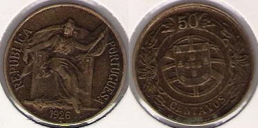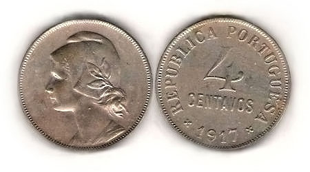 1912년과 1916년 사이에는 은 10, 20, 50 센타보와 1 이스쿠두 동전이 발행되었다. 1917년과 1922년 사이에는 청동 1, 2 센타보와 구리-니켈 4 센타보 동전이 발행되었다.