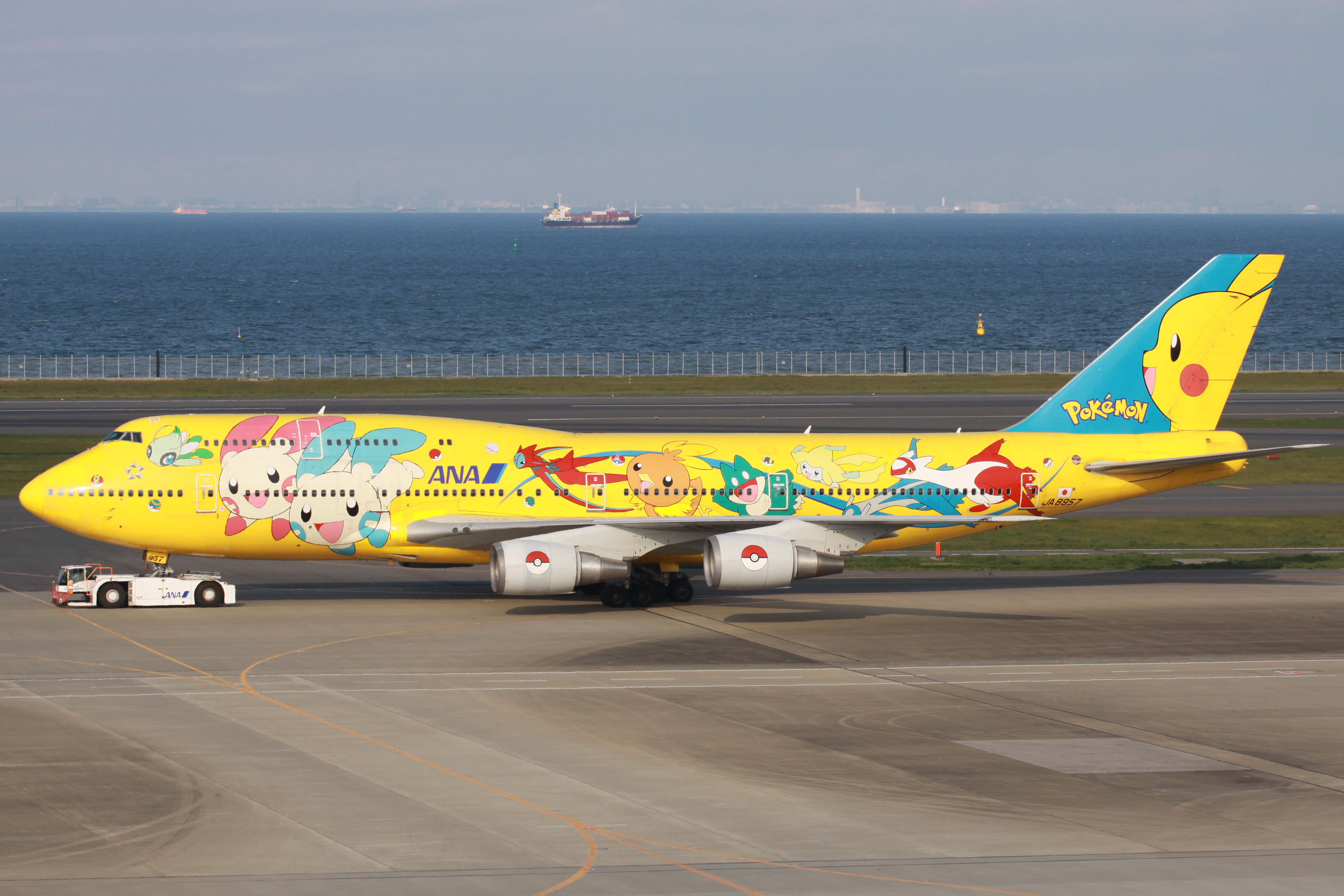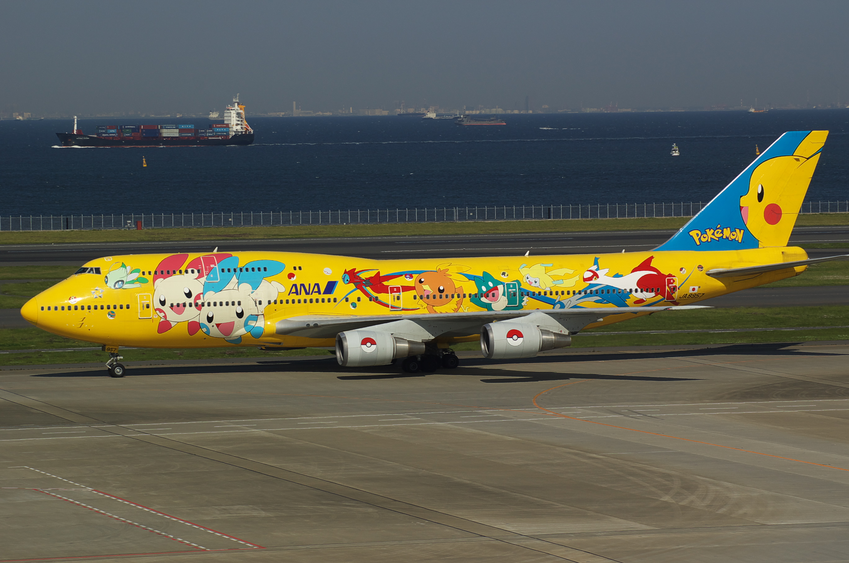 피카츄 점보2004년 5월 24일 최초로 취항했으며, 노란색을 바탕으로 2004년까지 역대 포켓몬 영화의 메인이 되는 포켓몬이 적용되었다. 나하 공항에는 피카츄 점보를 기념한 노란 견인 자동차도 있었다. 보잉 747-481D 기종으로 일본 국내선에서 운항했으며, 2013년 9월 30일 마지막 정기편 운행을 했다.