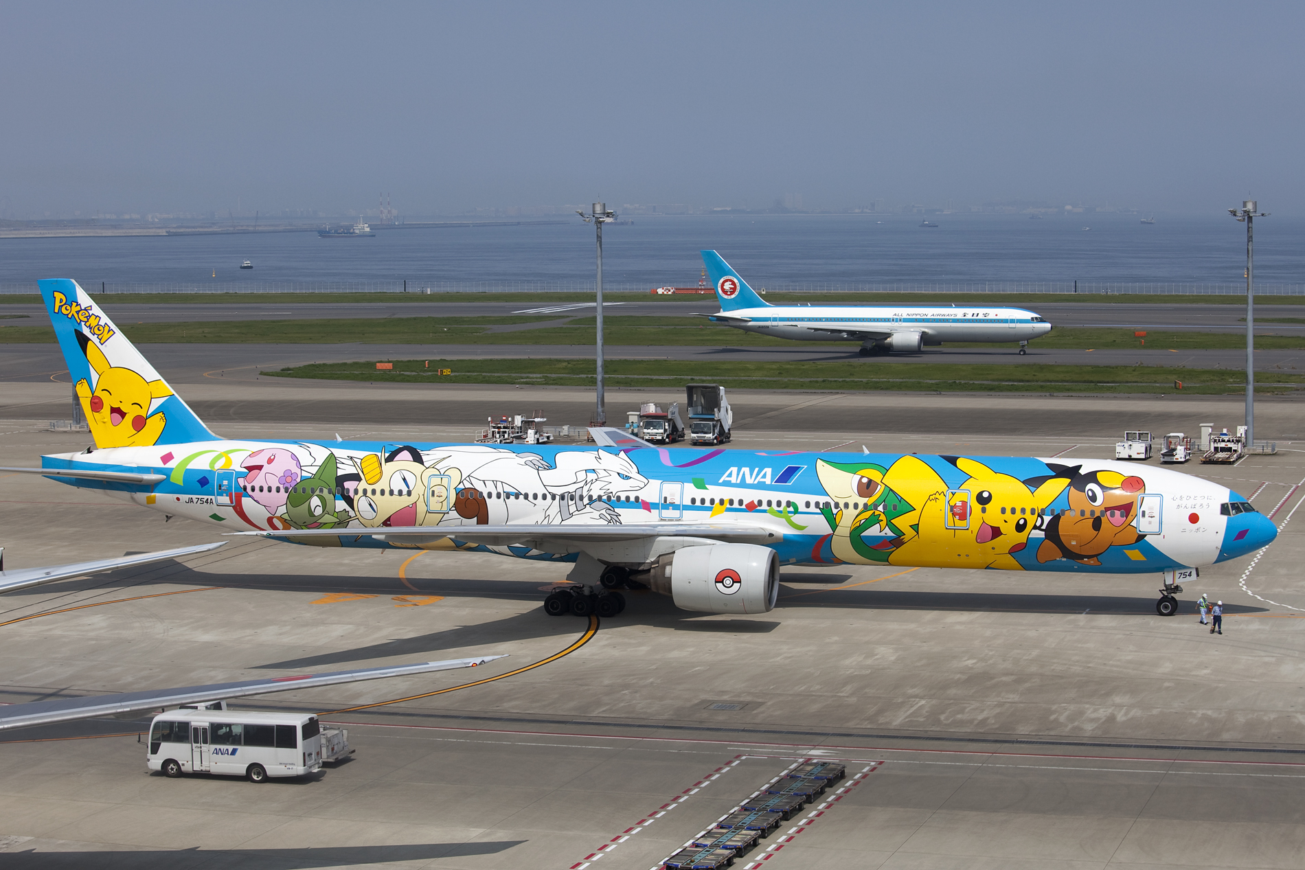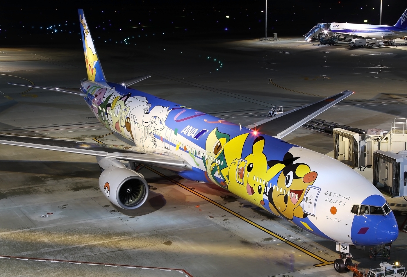2011년, 보잉 777-300 (JA754A)이 포켓몬스터 블랙·화이트의 캐릭터를 특징으로 하는 포켓몬 도색으로 칠해졌다. 전일본공수는 원래 이 포켓몬 제트의 도색 디자인에 대한 투표를 어린이들에게 맡길 예정이었으나, 2011년 도호쿠 지방 태평양 해역 지진의 결과로 투표 행사가 취소되었다.[8] 이 비행기는 선택된 도색 디자인이 평화로운 세상을 염원하는 의미를 담고 있어 '평화 제트'라는 별명이 붙었다.[8] 이 포켓몬 제트는 일본 영화관에서 비크티니와 흑의 영웅 제크로무와 비크티니와 백의 영웅 레시라무가 개봉된 지 불과 이틀 뒤인 2011년 7월 18일, 항공사의 국내선 노선에 투입되었다.