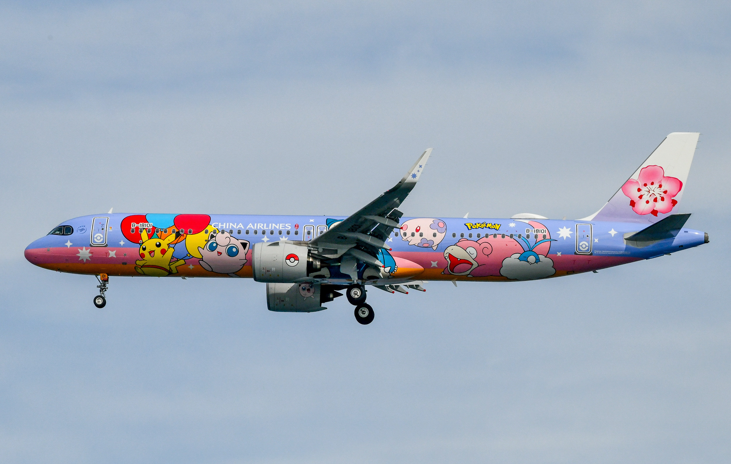 대만 중화항공 에어버스 A321neo(등록 기호: B-18101[54])는 "피카츄 제트 CI"로 새벽 하늘을 표현한 파스텔 퍼플 바탕에 동체 하부에 핑크와 파스텔 옐로우 배색, 피카츄, 푸린, 잠만보, 쉐이미 등 11마리의 잠과 관련된 포켓몬을 디자인했다. 2022년 9월 30일 타오위안 국제공항발 타이베이 쑹산 공항 착륙 관광 비행으로 시작, 10월 2일 타이베이 쑹산 발 도쿄 하네다 행부터 영업, 타이베이 쑹산-도쿄 노선 중심으로 일본 노선 포함 아시아 지역 노선 운항.[55]