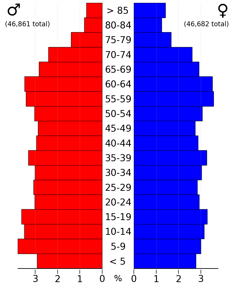2000년 인구 조사 당시 가구 소득 중간값은 40,089달러, 가족 소득 중간값은 47,105달러였다. 남성의 소득 중간값은 31,642달러, 여성은 24,243달러였다. 1인당 소득은 19,275달러였으며, 가족의 약 6.40%와 인구의 8.40%가 빈곤선 아래에 있었다. 18세 미만의 11.00%와 65세 이상의 6.30%가 빈곤층에 해당되었다.