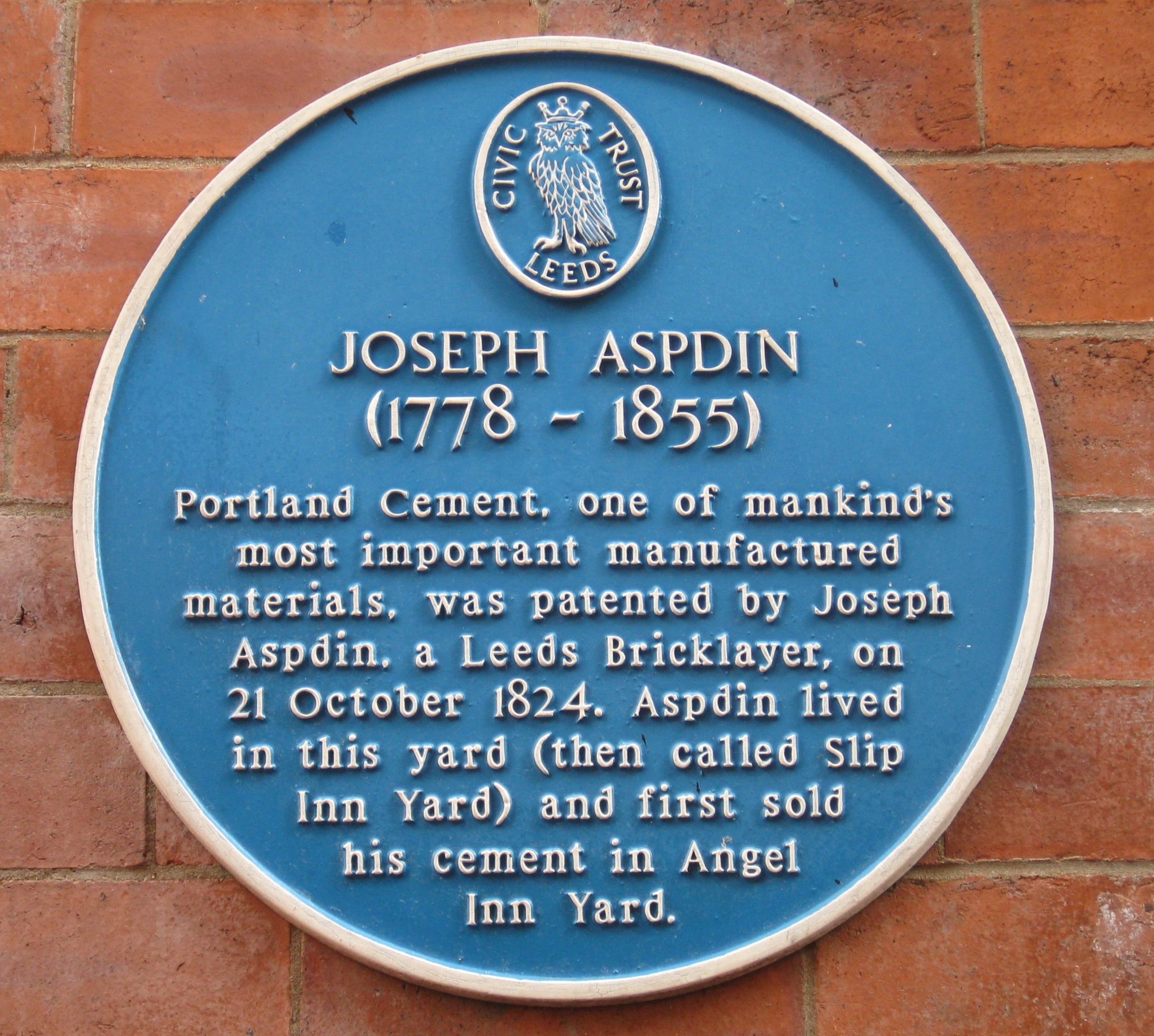 1824년 영국의 벽돌공 조지프 아습딘(Joseph Aspdin, 1779 ~ 1855)이 “인조석 제조법의 개량”으로 특허를 얻어 포틀랜드 시멘트란 이름을 붙였다.[37] 당시 건축용 석재로 쓰이던 영국 남단부의 포틀랜드섬의 석회석인 포틀랜드 석재의 색이 회백색으로 비슷해서 포틀랜드 시멘트란 이름을 붙였다.[37]