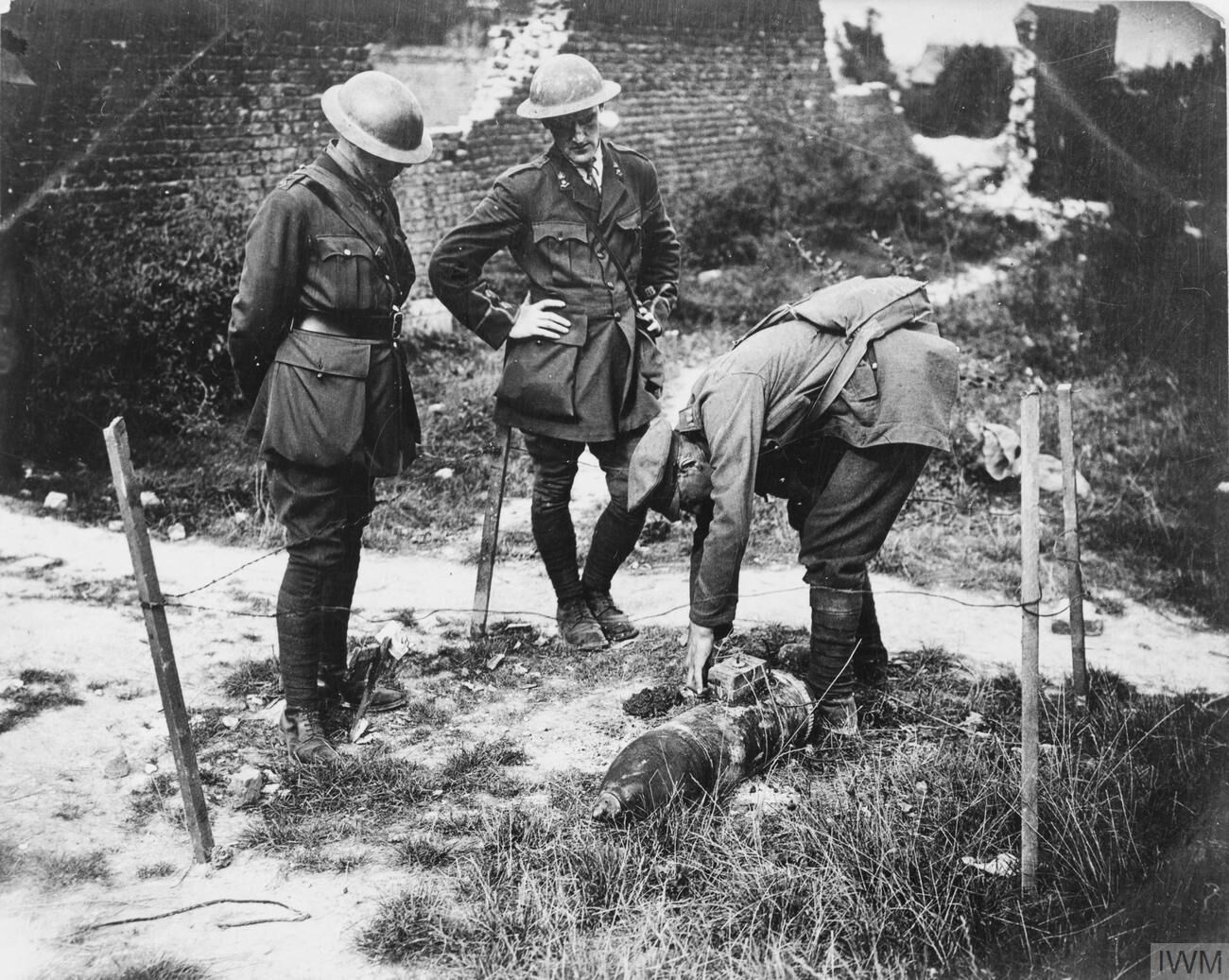 제1차 세계 대전 중 불발탄을 처리하는 영국 부사관