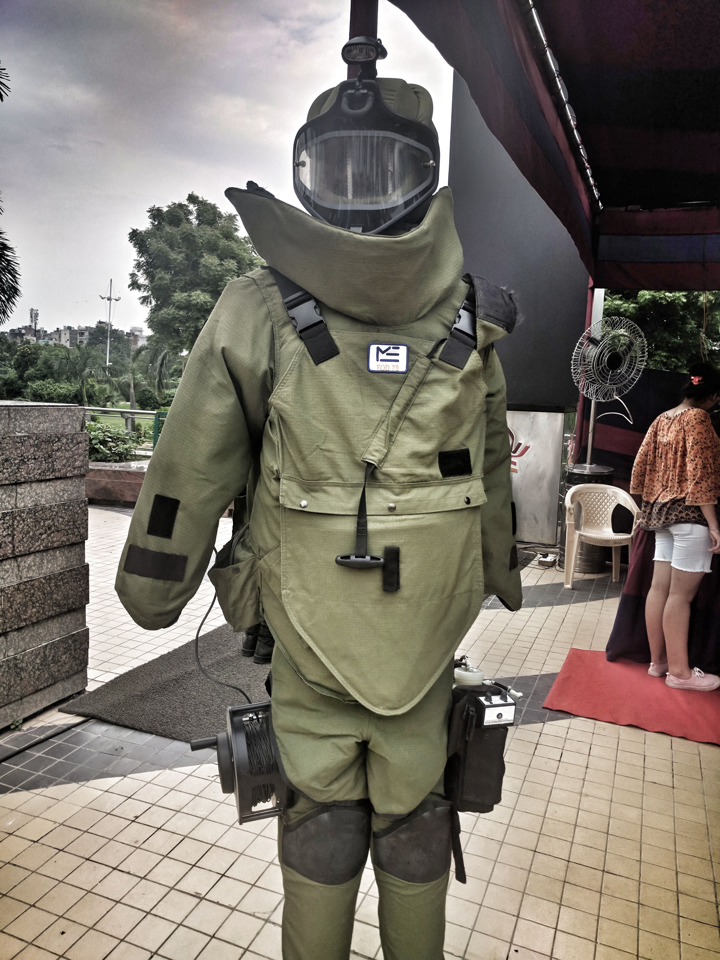 • EOD 방호복: 폭발물 처리(EOD) 전문가용 특수 보호복으로, 파편과 폭발로부터 신체를 보호한다.
