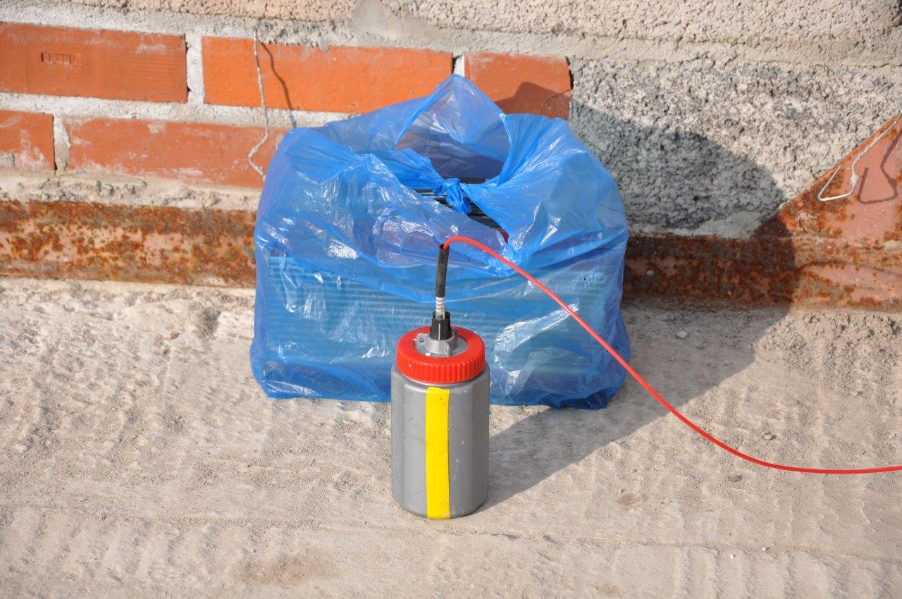 폭발물 처리 훈련 및 재료 시험. 105mm 포탄을 배터리 구동 휴대용 X선 발생기와 평판 검출기로 방사선 촬영하고 있다.