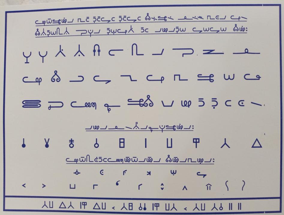 소문자 | a | b | c | d | ɖ | e | ɛ | f | g | gb | h | hw | i | j | k | kp | l | m | n | ny | o | ɔ | p | r | s | t | u | v | w | x | xw | y | z |