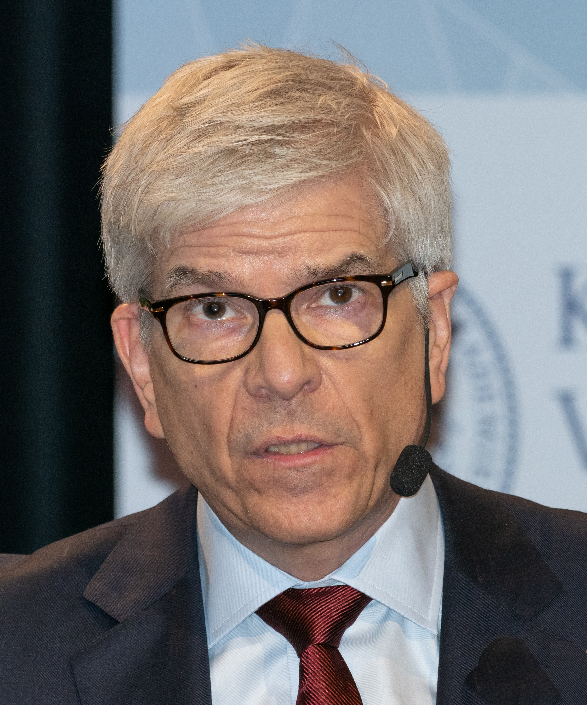 노벨상 기자회견에서의 폴 로머(2018년 12월)