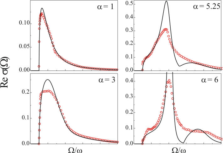 결합이 강한 경우(α가 큰 경우), 란다우와 페카르의 변분 접근법은 자체 에너지가 α²에 비례하고 폴라론 질량이 ''α''⁴로 비례한다는 것을 나타낸다. 란다우-페카르 변분 계산[5]은 모든 ''α''에 대해 유효한 폴라론 자체 에너지에 대한 상한 를 제공하며, 여기서 는 적분 미분 방정식을 풀어서 결정되는 상수이다.