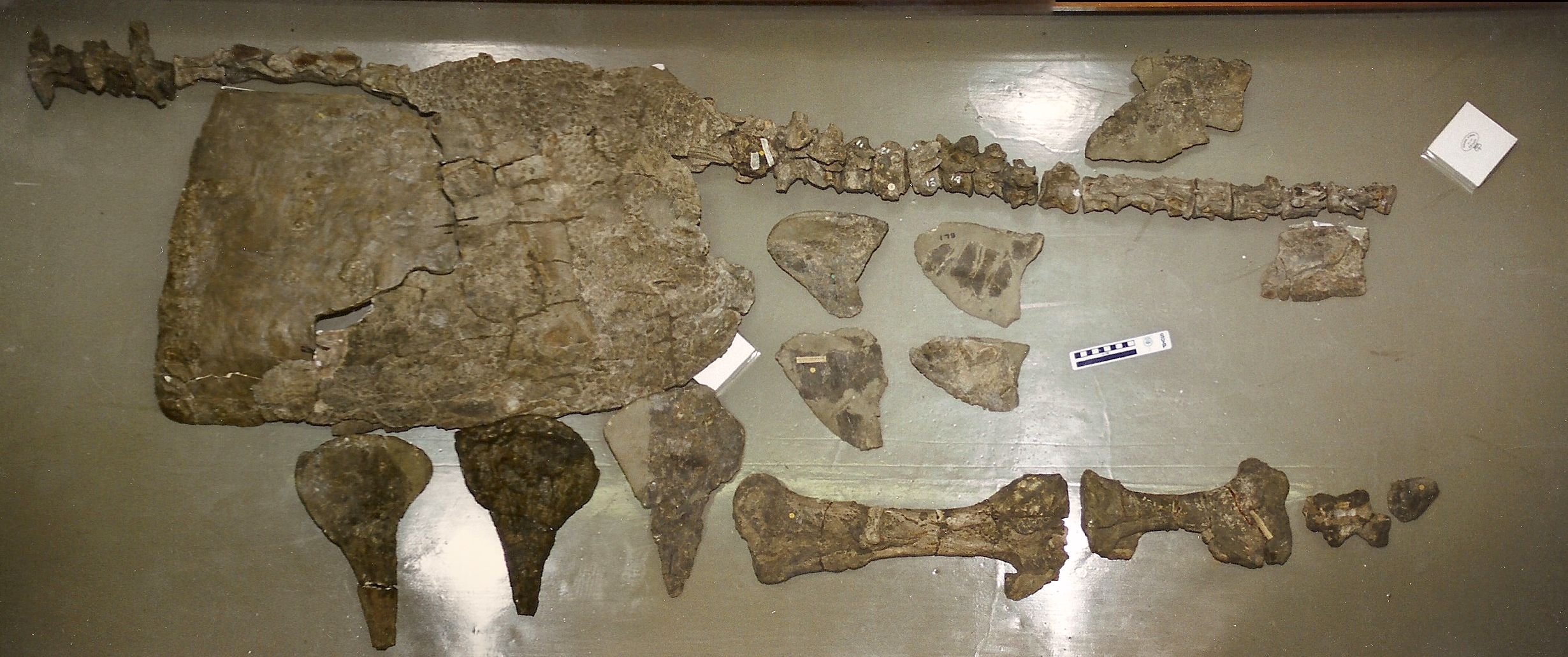 모식 표본, '''NHMUK PV R175'''는 바레미안에 속하는 상부 웨섹스 지층의 지층에서 발견되었다. 이 표본은 머리, 목, 전방 갑옷, 앞다리가 없고 등뼈, 5개의 등천골로 이루어진 천골 막대, 천골, 골반의 대부분, 왼쪽 뒷다리의 대부분, 오른쪽 대퇴골, 22개의 꼬리뼈, 갈비뼈, 쉐브론, 골화된 힘줄, 골반 방패, 22개의 가시 및 수많은 소골로 구성된 불완전한 골격이다.