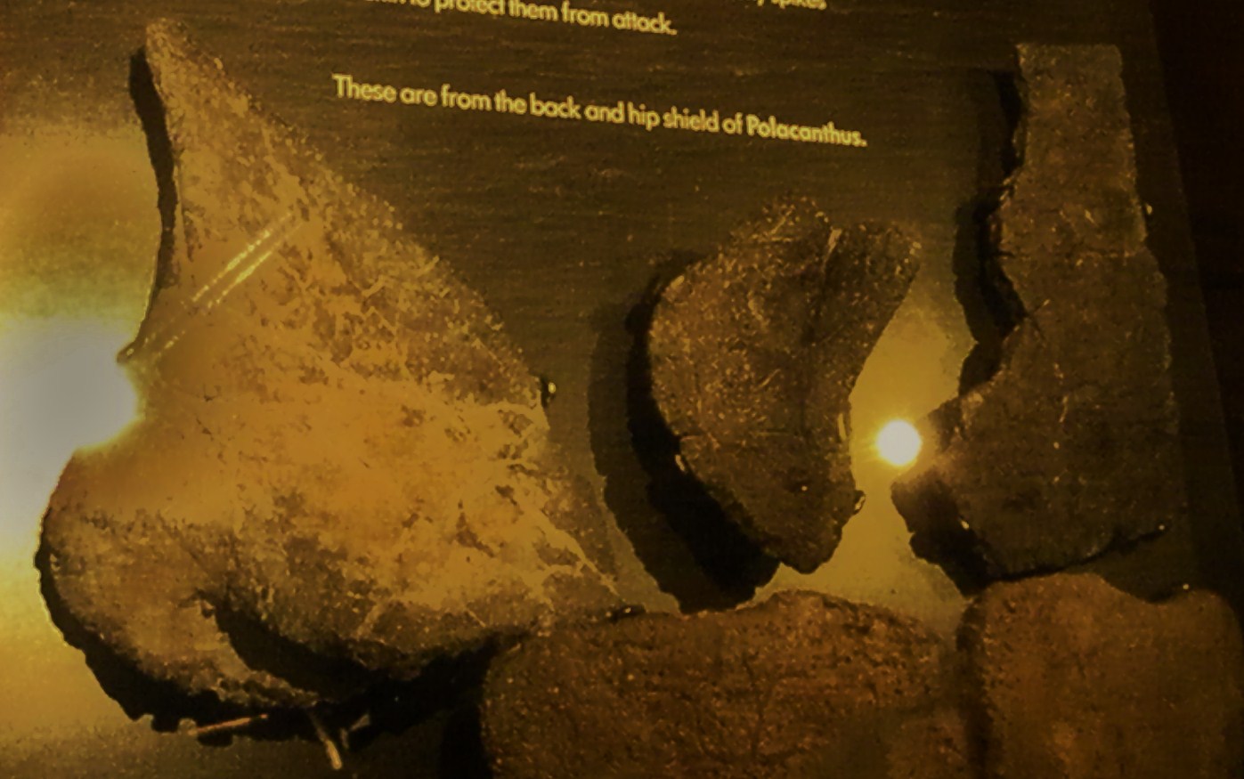 모식 표본 이전에 발견된 몇몇 표본들은 여러 시점에서 ''폴라칸투스''에 속하는 것으로 여겨졌다. 1843년 존 에드워드 리는 와이트 섬에서 갑옷 조각으로만 구성된 세 개의 표본을 발견했다고 보고했지만, 설명이 발표되기 전에 이미 분실되었다.[15] 1859년 지질학자 어니스트 P. 윌킨스는 자신의 수집품에 ''힐라에오사우루스''로 분류된 와이트 섬에서 나온 수많은 골편, 가시, 척추뼈가 존재한다고 언급했다.[16] 그의 사후, 그의 수집품은 여러 차례 옮겨졌고 조각들은 분실되었다.