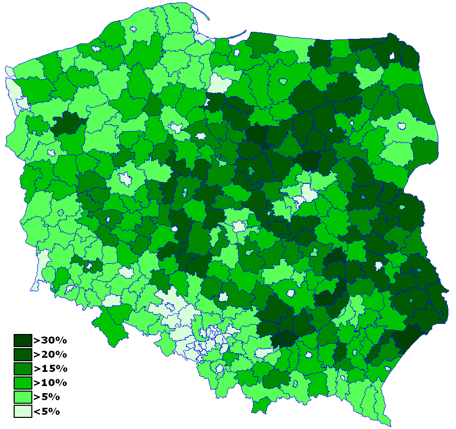 2015년 폴란드 총선에서 폴란드 농민당(PSL)은 5.13%의 득표율을 기록하며 간신히 5% 의석 진입장벽을 넘었다. 16석을 확보하며 세임(Sejm)의 5개 원내 교섭단체 중 가장 작은 규모였다.[46]