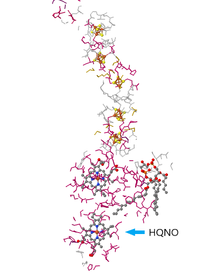 γ-소단위체는 네 개의 막횡단 나선과 두 개의 헴 b 그룹으로 구성된 막 결합 시토크롬 b이며, 이는 헴 결합을 돕는 네 개의 나선 묶음을 생성한다. 감마 소단위체에 결합된 헴 b 보조 인자는 소단위체를 통해 전자가 도약하도록 한다. 막횡단 나선은 두 개의 헴 b 그룹을 모두 유지하며, 셋만 헴 리간드를 제공하여 Fe-헴을 고정한다. 주형질 내 헴 b 그룹은 β-소단위체의 주형질 내 도메인의 [4Fe-4S]-3 클러스터로부터 전자를 받는다. 세포질 내 헴 b 그룹은 주형질 내 헴 b 그룹으로부터 전자를 받아 전자 흐름이 γ-소단위체의 막횡단 도메인에 존재하는 메나퀴논(비타민 K) 환원 부위로 향한다. γ-소단위체의 메나퀴논 환원 부위는 세포질 내 헴 b의 히스티딘 리간드의 결합을 통해 전자를 받는다.[9]