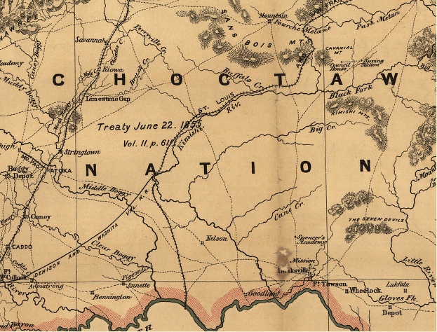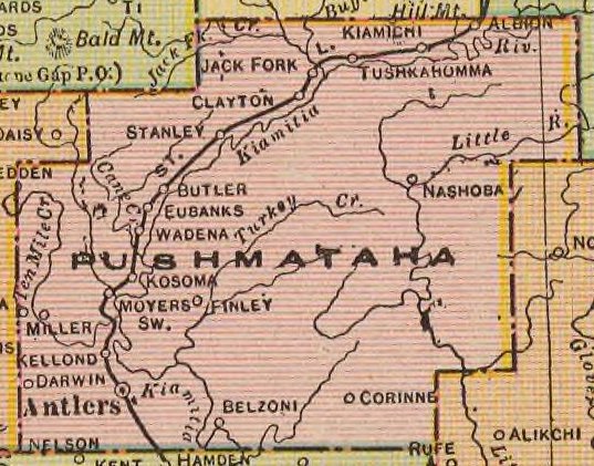 초크토족은 정착 생활을 하였으며, 농업에 종사했다. 초크토족은 산업이 없었기 때문에 푸시마타하 군 지역은 오랫동안 원시 야생 상태로 남아 있었다.1880년대 세인트루이스 앤 샌프란시스코 철도(일반적으로 프리스코로 알려짐)는 아칸소주 포트 스미스에서 텍사스주 파리까지 철도 노선을 건설했다. 연방 정부는 개발 촉진을 위해 인디언 준주에 철도 부지를 제공했고, 마을 개발과 철도 서비스를 위해 몇 마일마다 역이 설치되었다.