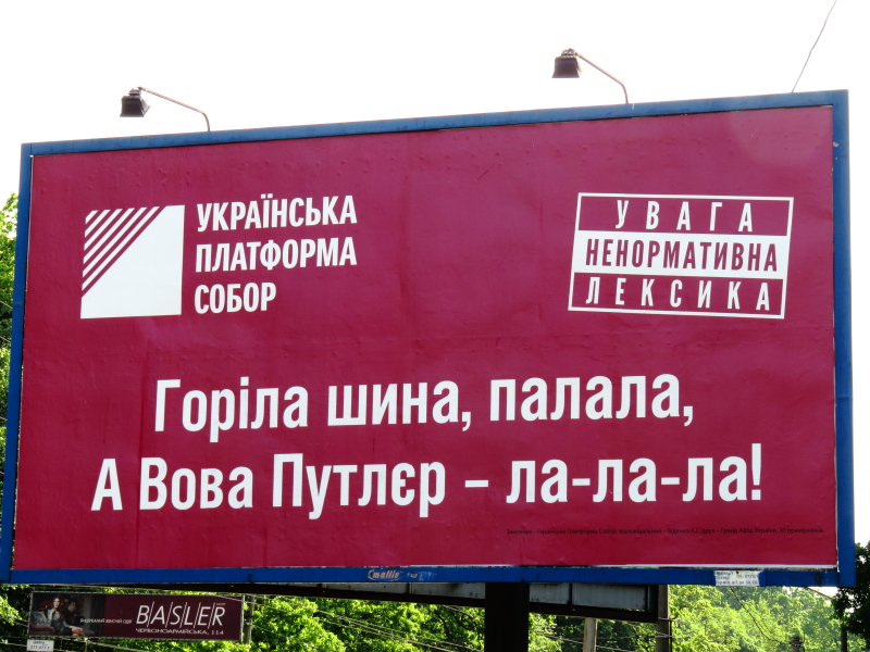 《워싱턴 포스트》는 "푸틀러, 우크라이나에서 손 떼"와 "푸틀러 카풋!"이라는 문구가 적힌 포스터를 들고 있는 우크라이나 시위대의 사진을 게시했다. 이 포스터에는 블라디미르 푸틴과 아돌프 히틀러의 외형적 특징을 조합한 캐리커처가 그려져 있었다.[66] 몇몇 러시아 언어학자들은 이 기사가 독자들 사이에서 푸틴에 대한 부정적인 이미지를 의도적으로 형성했다고 간주했다.[51][68]