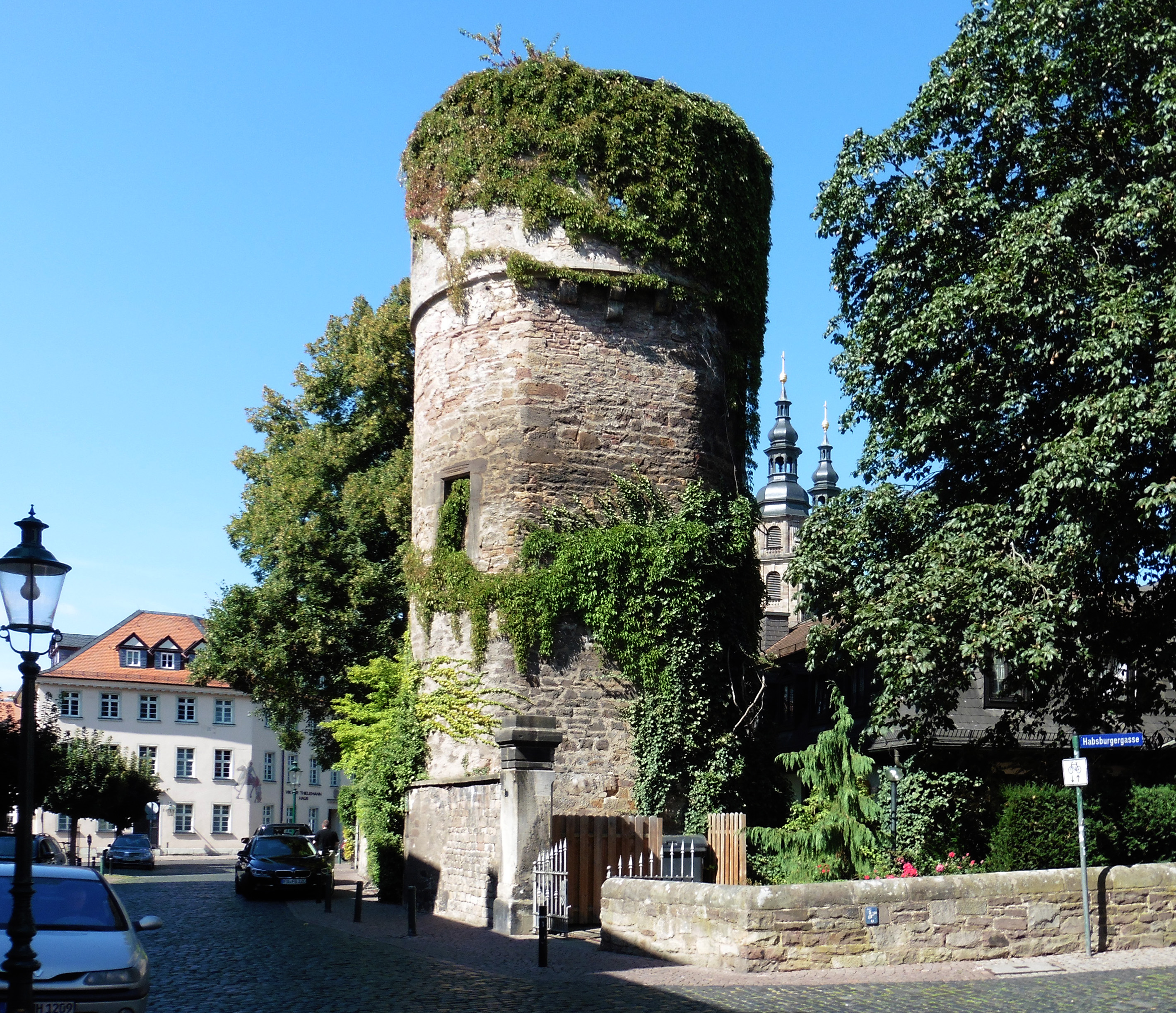 수도원장 마르크바르트 1세(재위: 1150년 - 1165년) 아래, 이 도시는 발전을 거듭했고, 많은 잃어버린 영토를 회복했다. 그러기 위해 중세에서 가장 유명한 문서 위조자 중 한 명인 풀다의 수도사 에버하르트가 수도원장을 도왔다. 수도원장 마르크바르트는 도적 기사를 몰아내고 성채를 획득했다. 1162년에 성벽, 12개의 탑, 5개의 문(헤어르 문, 페터스 문, 플로렌 문, 콜호이저 문, 프라우엔 소문)을 갖춘 방어 시설을 이 도시에 설치했다.
