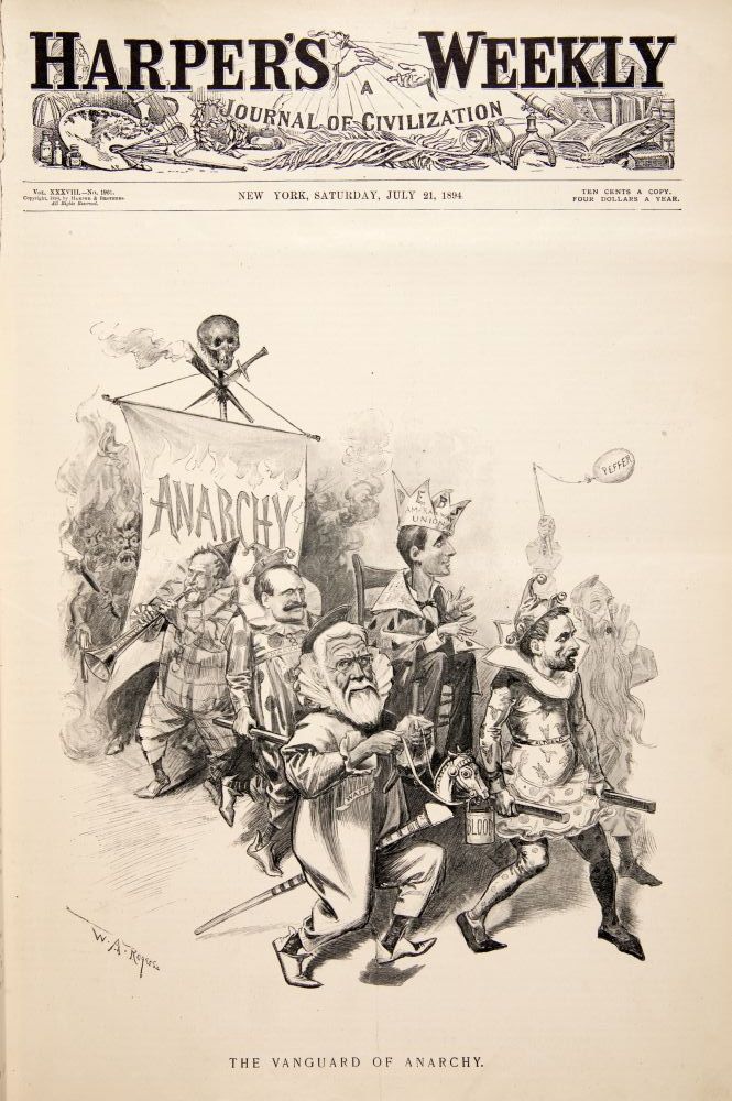 ''하퍼스 위클리(Harper's Weekly)''는 유진 데브스와 파업 주최자들을 1894년 7월 21일 "무정부주의의 선봉"으로 묘사했다.