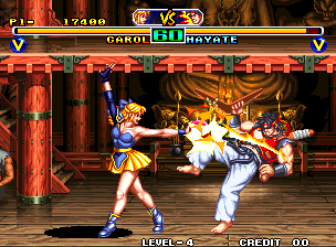 버튼 배치는 약간 다르며, 펀치 버튼, 킥 버튼, 무기 버튼, 그리고 면을 전환하는 점프 버튼으로 구성되어 ''월드 히어로즈''와 다소 유사하다. 펀치 또는 킥 버튼을 누르고 있으면 더 강력한 공격이 발동된다. ''용호의 권''과 마찬가지로, 캐릭터가 서로 가까이 있으면 카메라가 확대되며, ''아랑전설''처럼 두 개의 라인으로 구성된 전투 시스템을 사용하여 서로 싸울 수 있다.