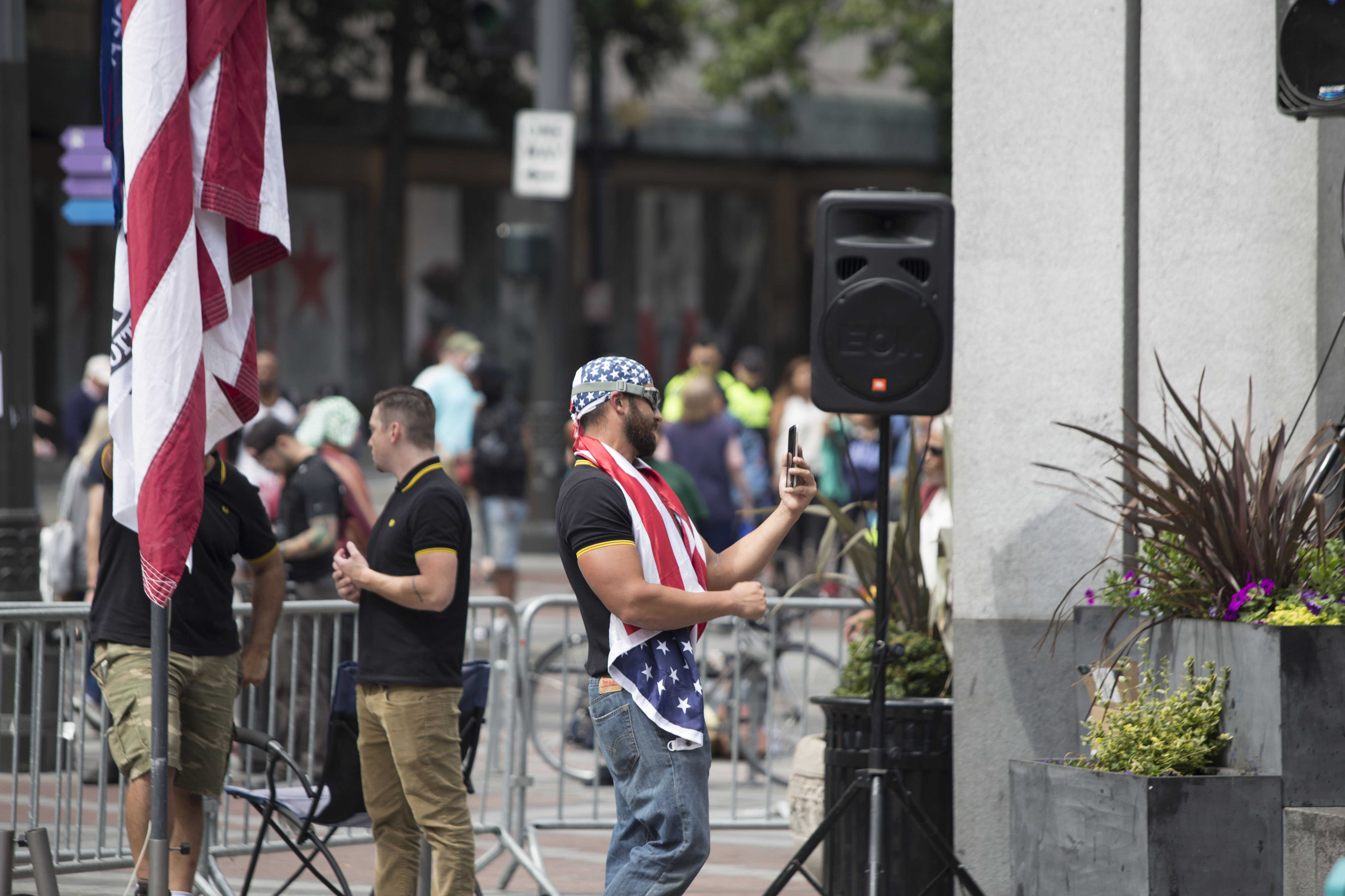 프라우드 보이스 회원 투시탈라 "타이니" 토에세(Tusitala "Tiny" Toese)는 2020년 8월 28일 워싱턴에서 체포되었다.[172] 그는 2018년 6월 시위대에게 봉합 수술과 뇌진탕을 입힌 경범죄 폭행 혐의와 관련된 보호관찰 위반 혐의로 체포영장이 발부되었다.[172][174]