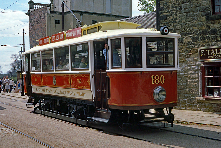 프라하에서 마차 철도 운행은 1875년 9월 23일에 시작되었으며, 경로는 카를린 - 국립극장 간이었다. 창업자이자 사장은 벨기에 출신의 에두아르트 오틀레였다. 1886년까지 증기 노면 전차에 대한 다양한 아이디어가 제기되었다.[9]