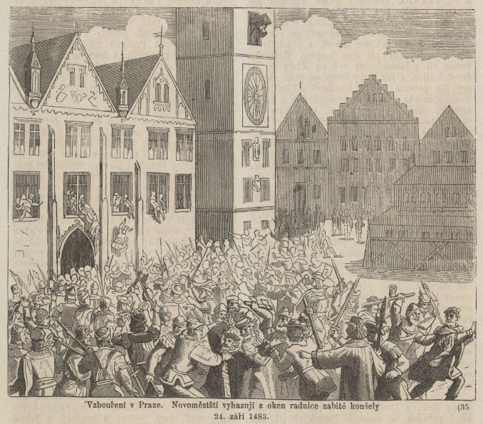1483년 9월 24일, 헝가리의 블라디슬라프 2세 재위 시절 프라하에서 양쪽 성체 영성체를 지지하는 세력이 구시가지, 신시가지, 소지구에서 폭력적인 쿠데타를 일으켰다. 이 사건으로 구시가지 시장과 신시가지 의원 7명이 살해되었다.[3]
