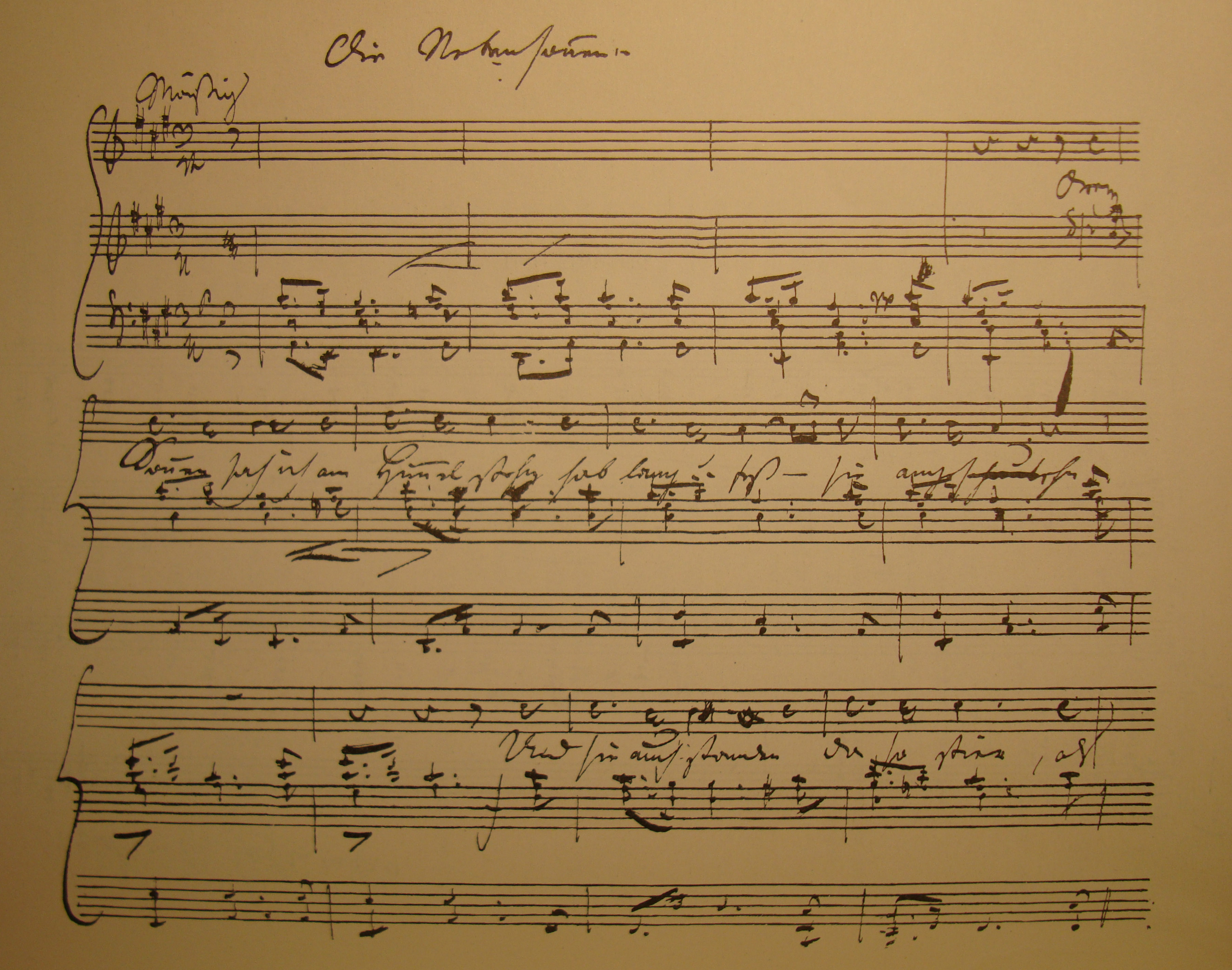 슈베르트 작품의 악보 교정은 21세기에 들어선 지금도 쉽지 않다. 특히 “헤어핀”이라고도 불리는 특대의 악센트와 같은 기호[155]를 어떻게 해석할 것인가가 문제가 되고 있다. 마디를 넘어 헤어핀[156]이 걸쳐 있는 경우도 있다. 이것을 데크레센도로 해석할 것인가, 아니면 악센트로 해석할 것인가가 문제가 된다. 또한 슈베르트는 날카로운 스타카티시모와 같은 세로선을 사용하기도 하며 (“미완성”의 2악장) 19세기 출판 악보에서는 일반적인 스타카토로 고쳐져 있다. 이것도 원래대로 되돌리는 움직임이 보인다.