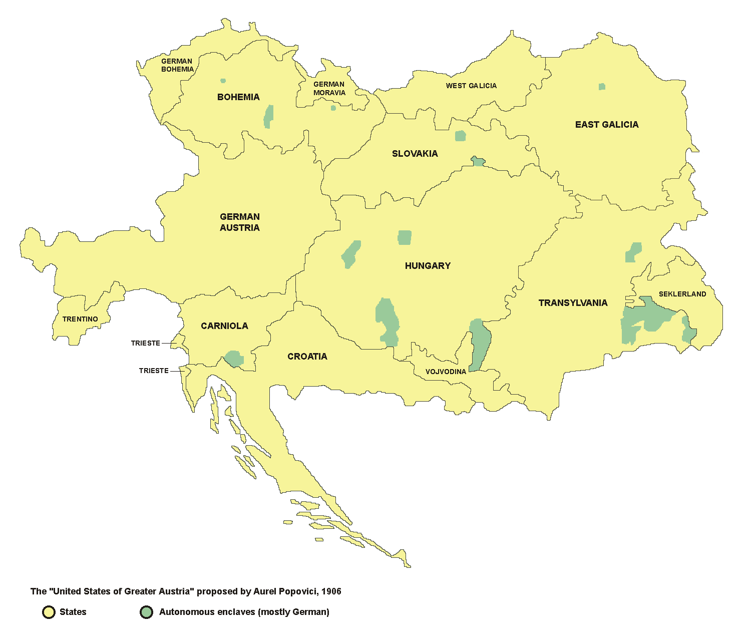프란츠 페르디난트는 슬라브족의 자치권을 인정하여 오스트리아-헝가리 제국을 다민족 연방 국가인 대오스트리아 합중국으로 개편하려는 구상을 가지고 있었다.[38] 그는 제국 내 민족들에게 더 많은 자치를 부여하여 그들의 불만을 해소하려 했으며, 특히 1867년 오스트리아-헝가리 타협에서 소외되었던 보헤미아의 체코인과 크로아티아 및 보스니아의 남슬라브족에게 더 많은 자치권을 주어야 한다고 주장했다.[39]