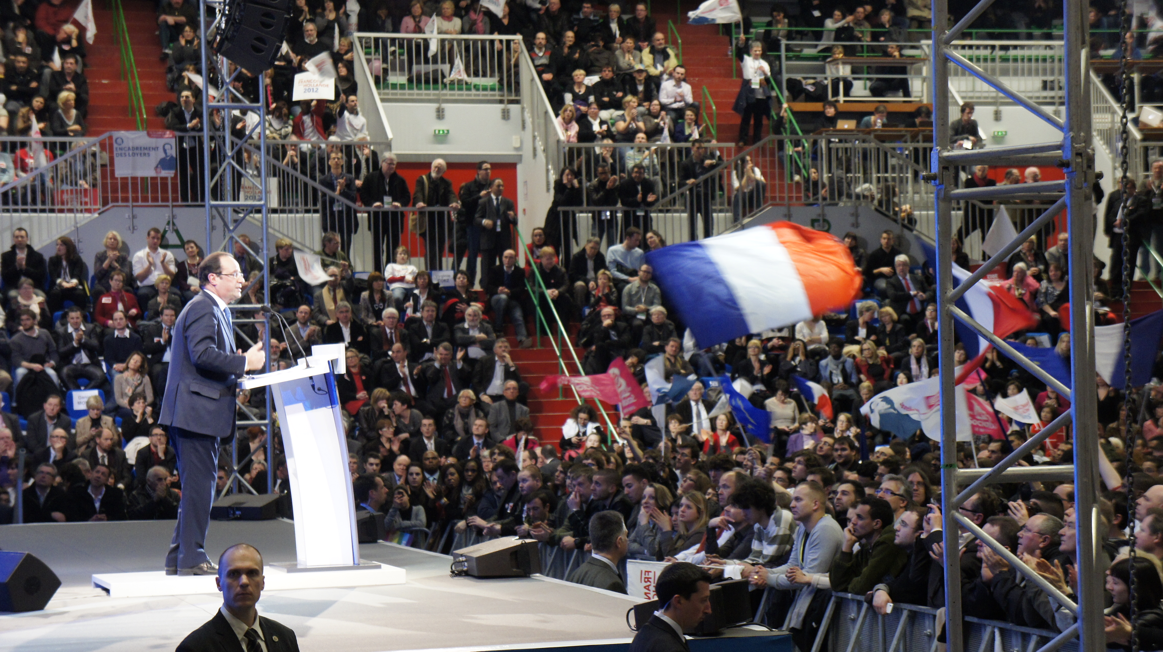 올랑드의 대통령 선거 운동은 피에르 모스코비치 국회의원과 스테판 르 폴 유럽 의회 의원이 총괄했다.[25] 그는 2012년 1월 22일, 파리 근교 르 부르제에서 열린 대규모 집회에서 2만 5천여 명의 지지자 앞에서 연설하며 공식 선거 운동을 시작했다.[26][27] 이 연설에서 그는 평등과 금융 규제를 선거 운동의 핵심 가치로 내세웠다.[27]