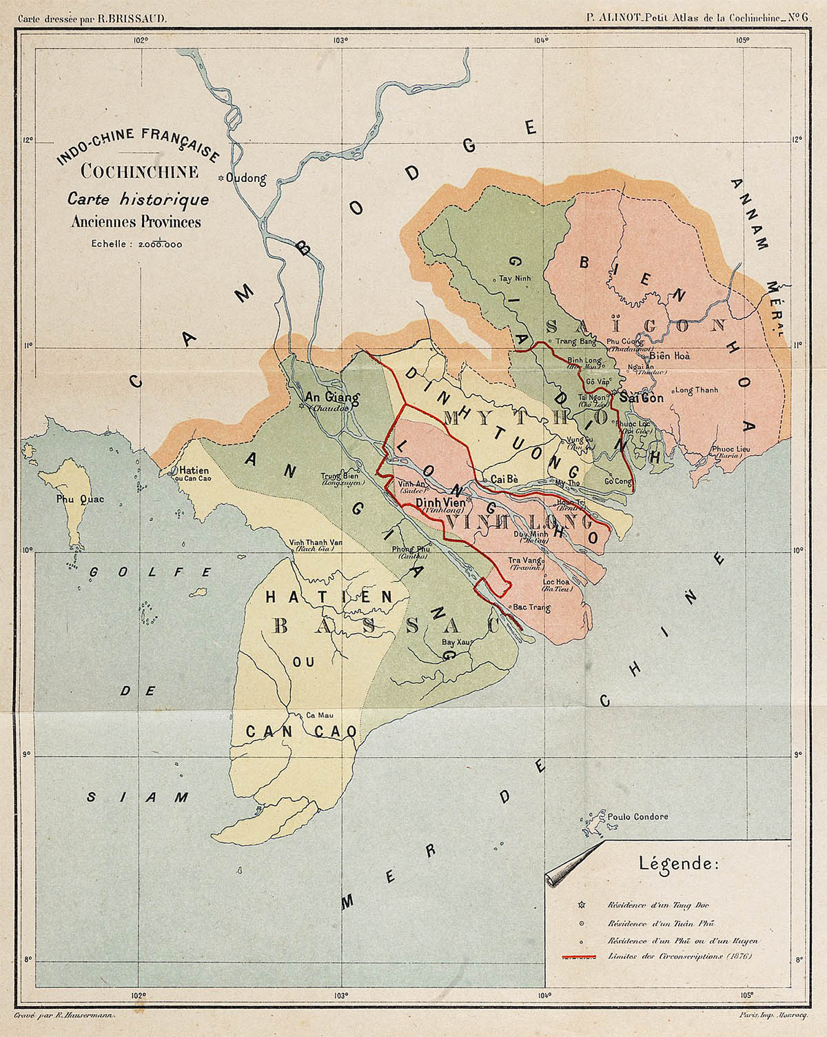 베트남은 1862년 사이공 조약을 체결하여 가톨릭 종교의 자유로운 실천을 보장하고, 메콩 삼각주(및 통킹의 북부 3개 항구)를 무역에 개방했으며, 비엔호아, 자딘, 딘투엉 지방과 풀로 콘도르 섬을 프랑스에 할양했다.[5] 1867년 프랑스 해군 제독 피에르 드 라 그랑디에르는 베트남에 쩌우독, 하티엔, 빈롱의 세 개 지방을 추가로 넘겨주도록 강요했다. 이로써 베트남 남부 전체와 메콩 삼각주가 프랑스의 지배하에 들어갔다.[5]