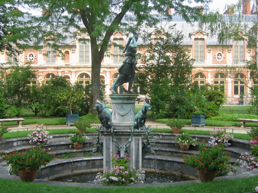 퐁텐블로 궁전 정원은 카페 왕조의 프랑스 국왕들의 사냥터였던 숲에 위치하며, 1528년 프랑수아 1세에 의해 조성되었다.[11] 정원은 분수, 파르테르, 프로방스에서 가져온 소나무 숲, 1541년 프랑스 최초의 인공 동굴(grotto)을 포함하여 조성되었으며, 이는 프랑스 정원의 규모를 확장하는 계기가 되었다.[11] 카트린 드 메디치는 로마의 벨베데레 정원을 장식했던 조각상들의 청동 복제품을 주문했으며, 미켈란젤로의 휴식을 취하는 헤라클레스 조각상이 호수 정원을 장식했다.[11] 1594년, 앙리 4세는 분수 정원과 다리로 연결된 호수에 작은 섬을 추가했다.[11]