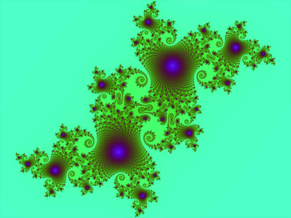 여기서 z와 c는 복소수이다. 쥘리아 집합은 정해진 c에 대해 위 점화식을 수렴시키는 z의 초기값을 의미하며, 망델브로 집합은 정해진 z의 초기값에 대해 위 점화식을 수렴시키는 c를 의미한다.