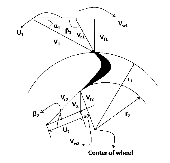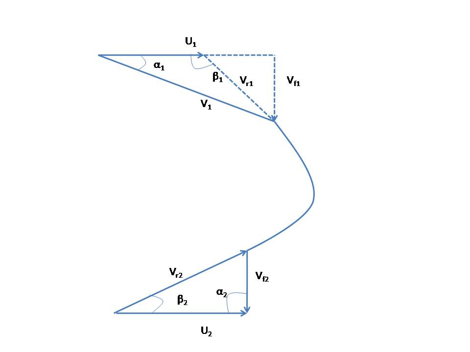 일반적으로 유동 속도는 전체적으로 일정하게 유지되며, 드래프트 튜브 입구에서의 속도와 같다. 오일러 터빈 방정식을 사용하면, 유체의 단위 질량당 로터로의 에너지 전달량 ''e''는 ''V''w1''U''1이다. 입구 속도 삼각형에서,