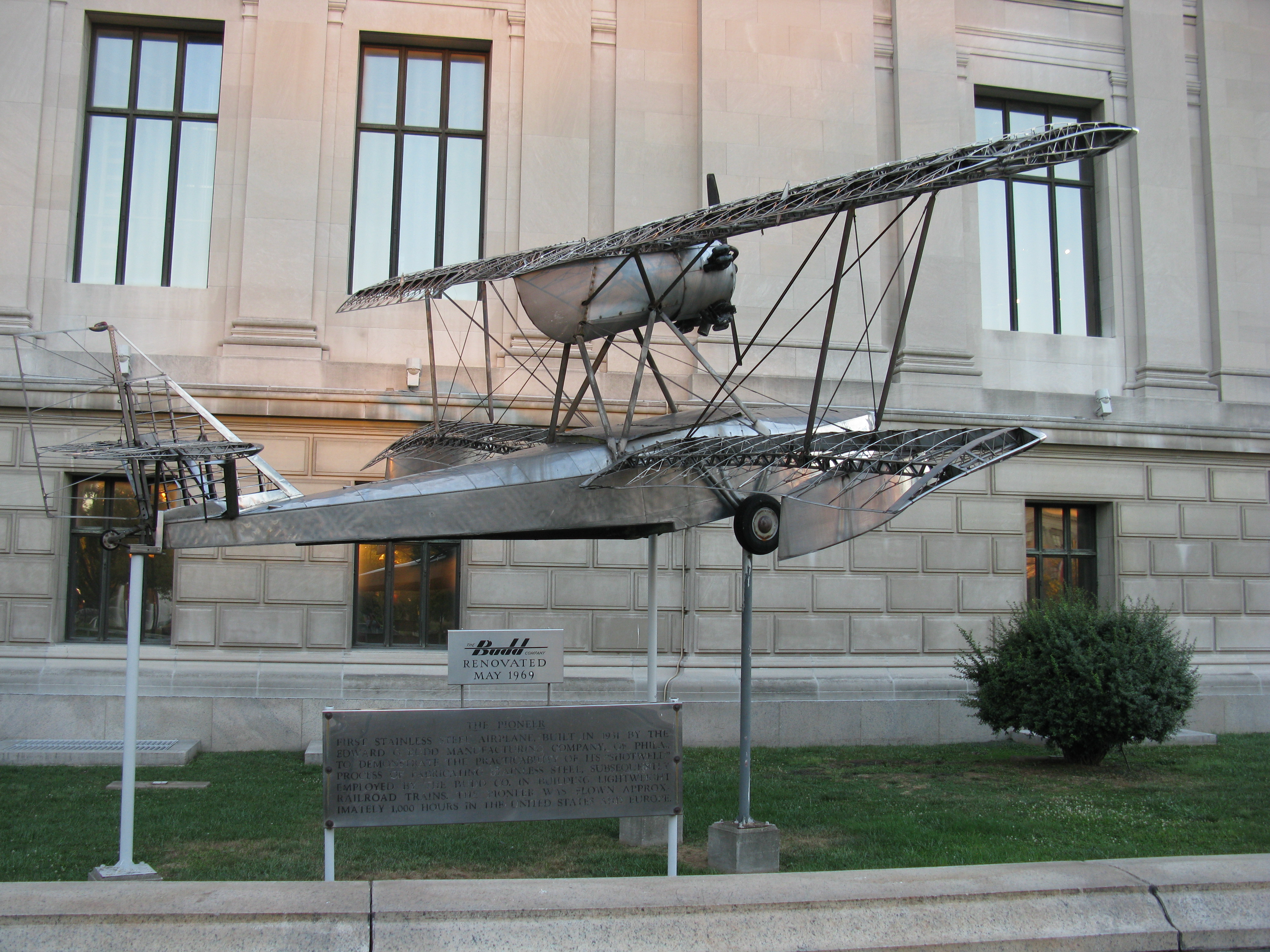 과학 센터에는 박물관 전시물 외에도 여러 볼거리가 있다. 박물관 앞에는 에드워드 F. 버드 제조사가 제작한 세계 최초의 스테인리스 스틸 비행기인 버드 BB-1 ''파이오니어''가 1935년부터 전시되어 있다.[24]