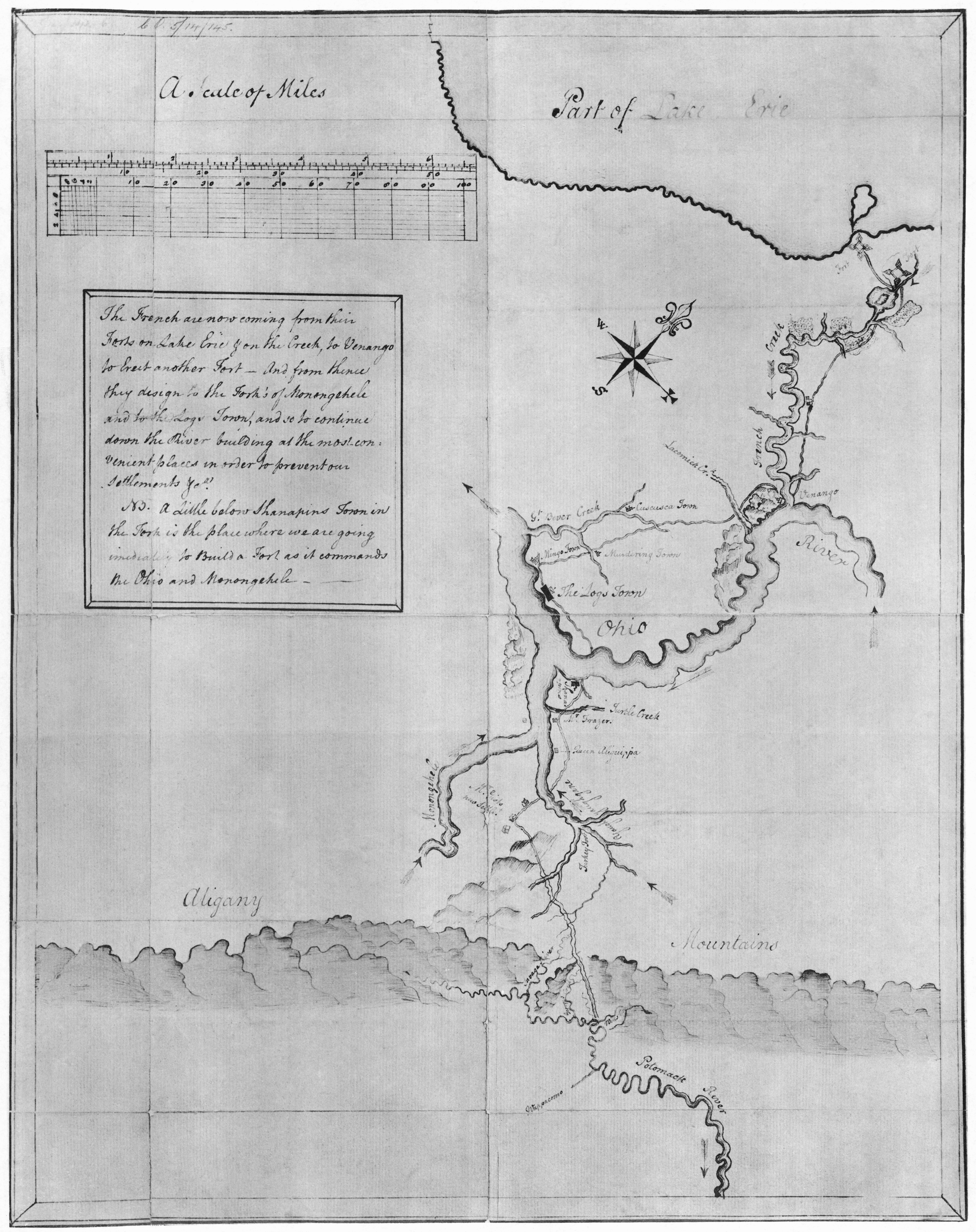 버지니아의 지사 로버트 딘위디는 오하이오 회사의 투자자였으며, 프랑스가 영유권을 주장하면 손해를 볼 입장이었다.[220] 그는 1753년 10월, 21세의 소령 조지 워싱턴 (그의 형제도 오하이오 회사 투자자였다) 에게 프랑스인들에게 버지니아 영토를 떠나라고 경고하라는 명령을 내렸다.[221] 워싱턴은 소규모 부대를 이끌고 출발하여 통역관 제이콥 반 브람, 크리스토퍼 기스트 (이 지역에서 활동하는 회사 측량사), 그리고 타나그리슨이 이끄는 몇 명의 밍고족을 합류시켰다. 12월 12일, 워싱턴과 그의 부대는 포트 르뵈프에 도착했다.[222][223]