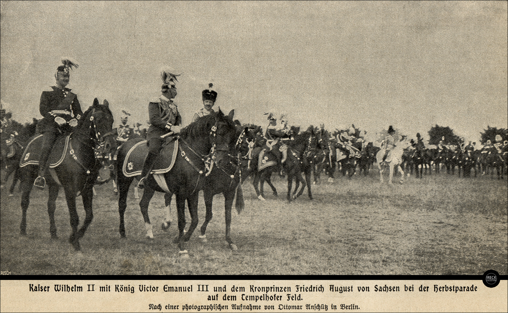 군사 훈련에 참가한 프리드리히 아우구스트 3세, 빌헬름 2세, 비토리오 에마누엘레 3세(1902년)