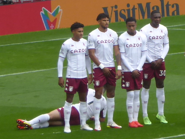 종종 여러 선수( 빨간색 )가 프리킥을 위해 앞에서 줄을 서서 수비팀( 파란색 )에게 시야를 가리게 한다.