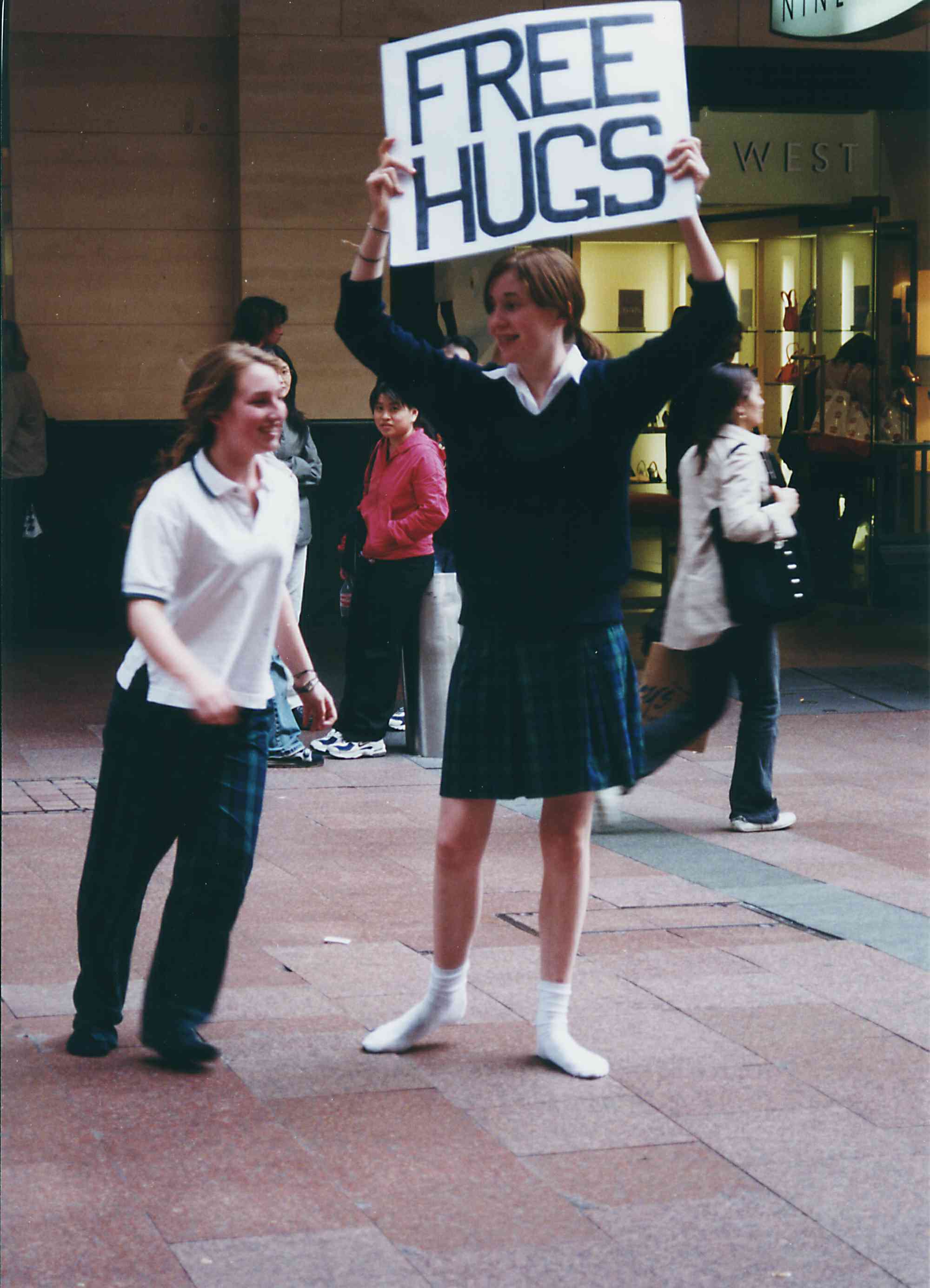 2004년 호주 시드니에서 "프리 허그" 팻말을 들고 있는 사람